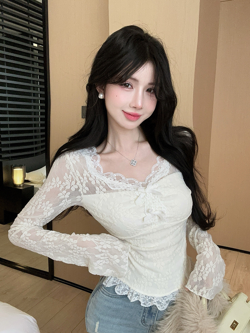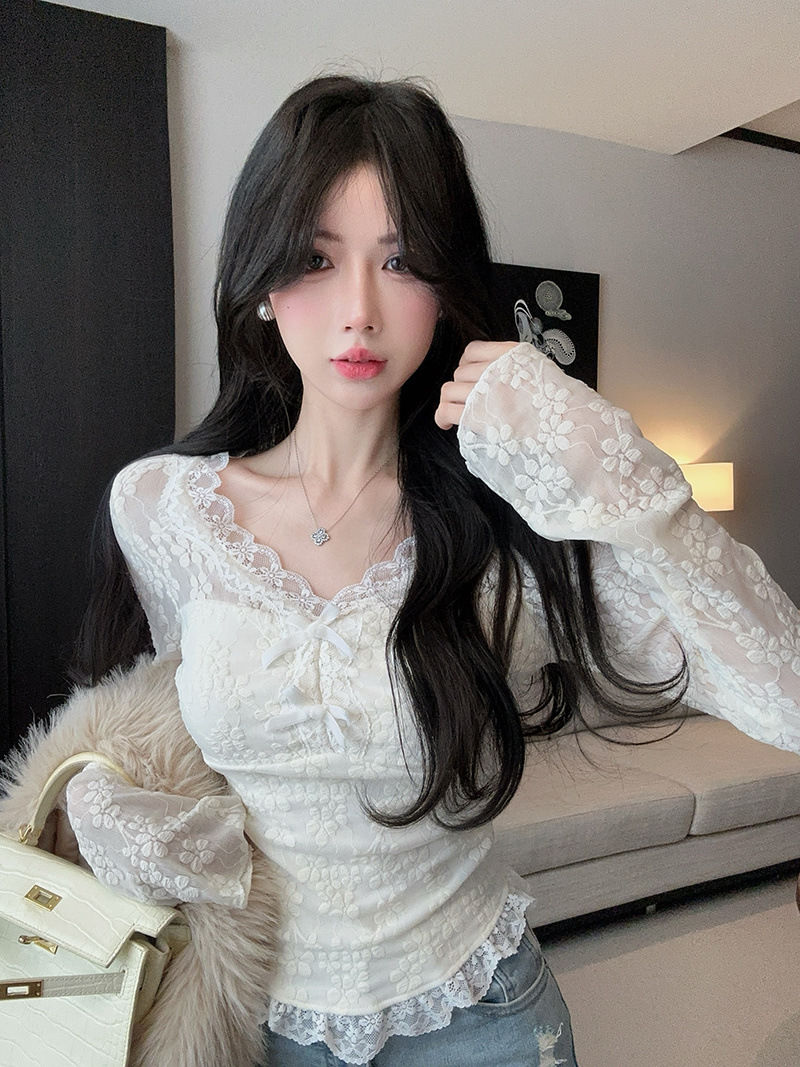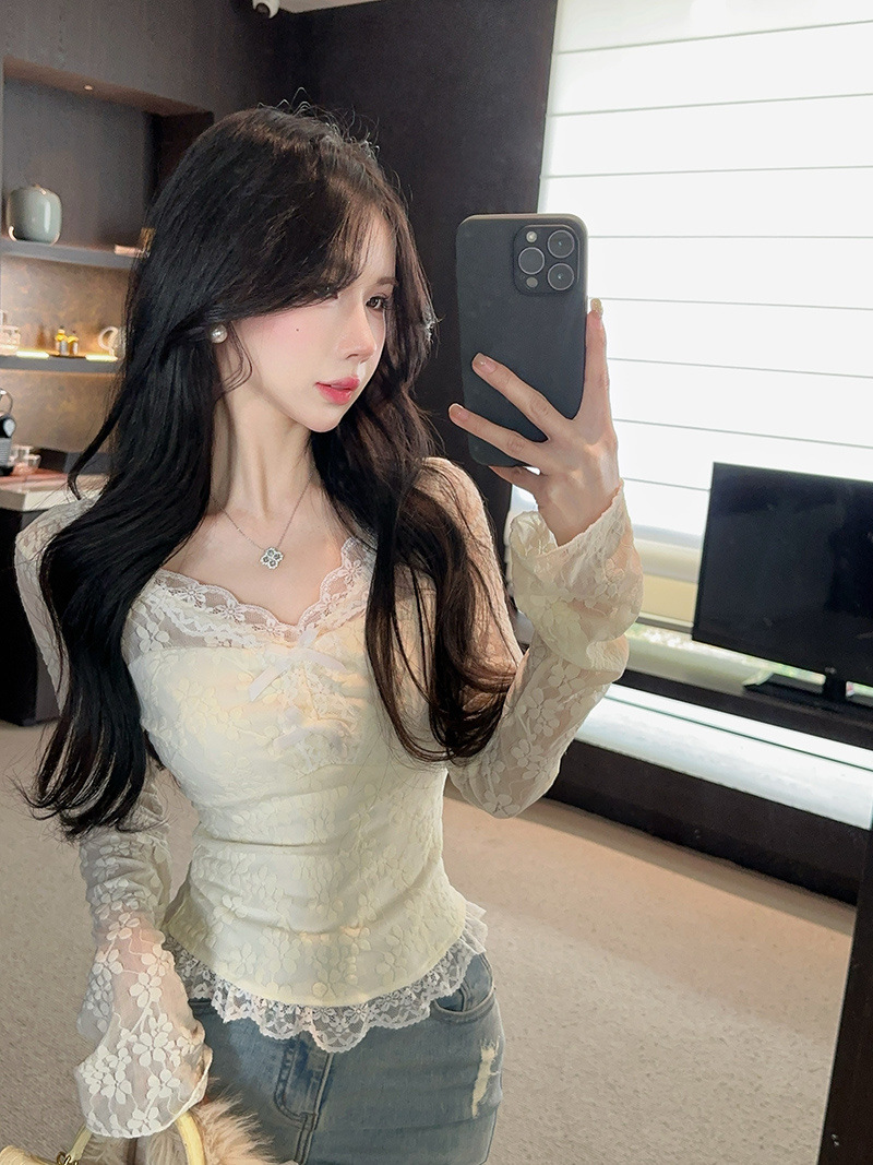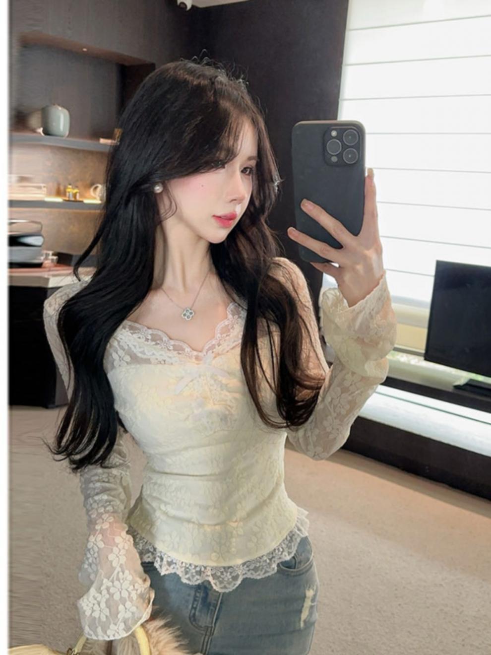 독특하고 세련된 아름다운 슈퍼 니스 레이스 셔츠 내베이스 셔츠 섹시한 아름다운 최고 늦은 가을과 이른 겨울 착용
