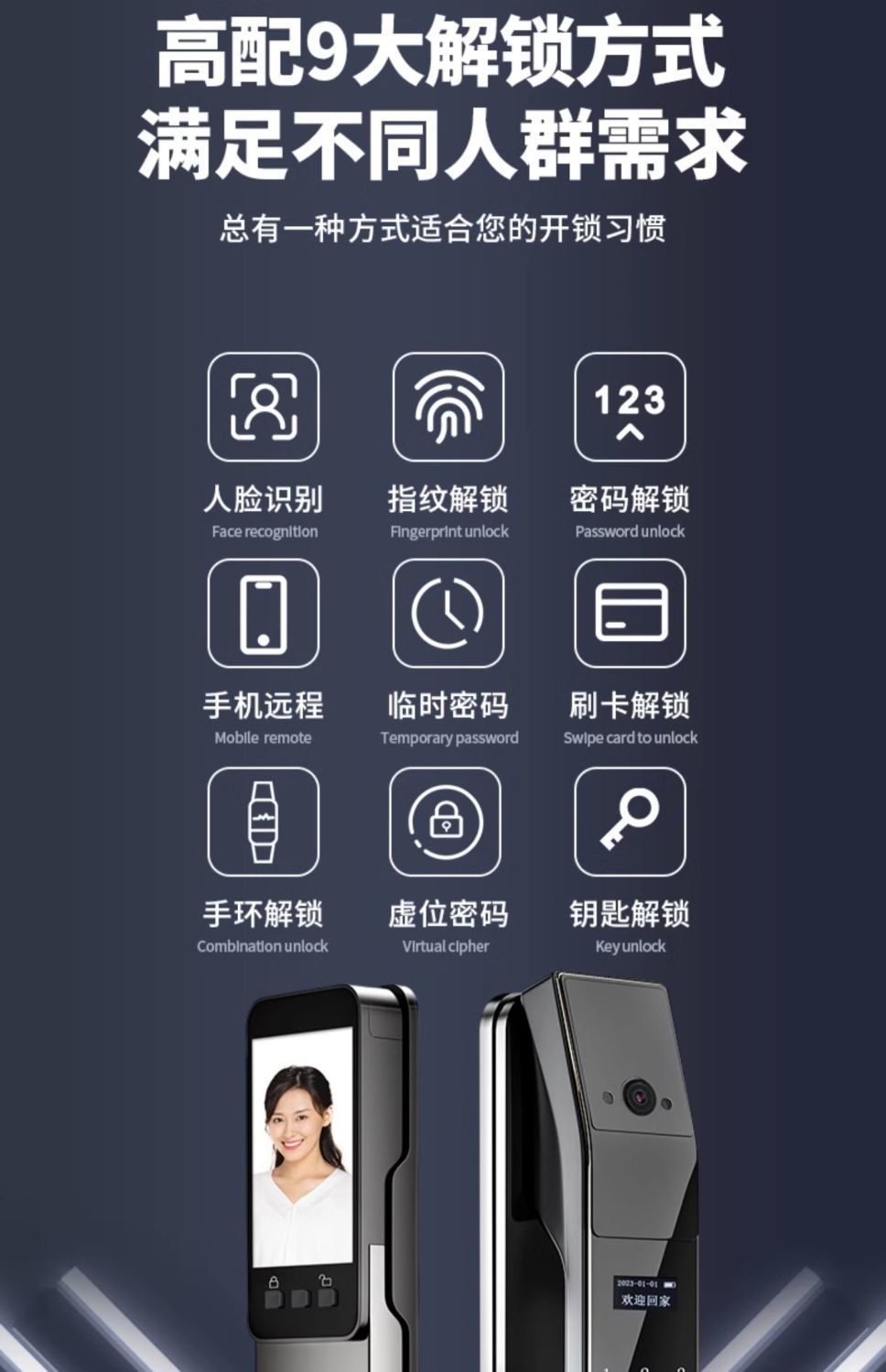 • 얼굴 + 무료 배터리 팔찌 도어 카드 + 걸림 방지 잠금 장치 본체_일대일 설치 안내