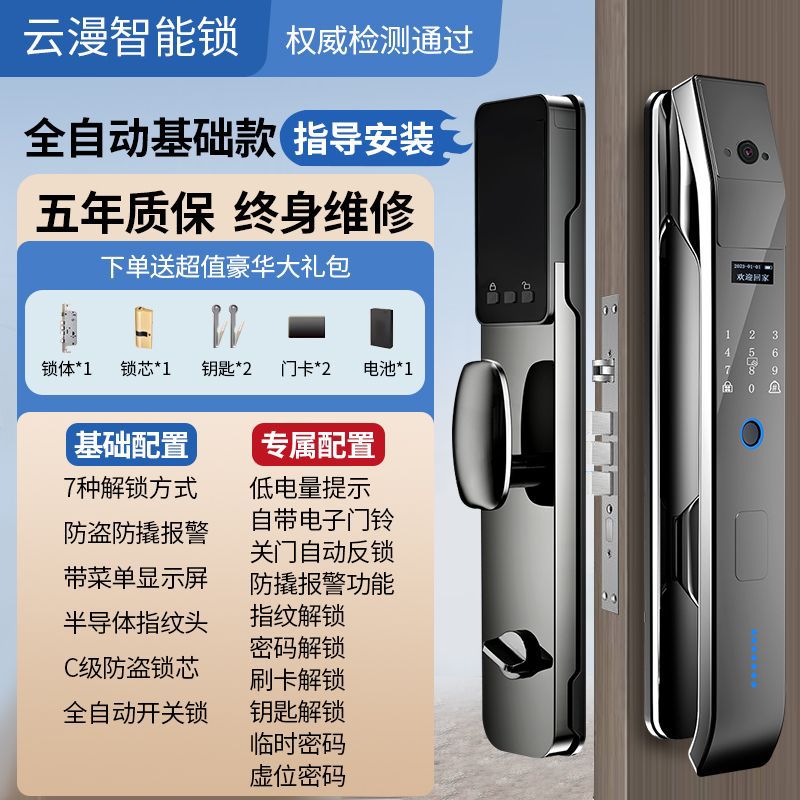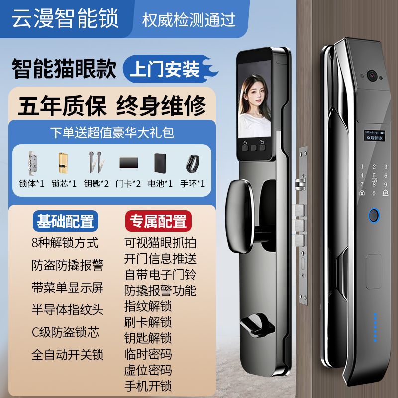 Yunman 자동 지문 잠금 홈 보안 문 암호 잠금 3D 얼굴 인식 HD 대형 스크린 고양이의 눈 스마트 잠금스토어 가기