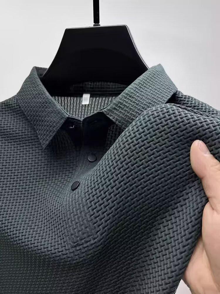 아이스 실크 폴로 셔츠 남자 여름 새로운 솔리드 컬러 라 하프 슬리브 셔츠 탑 트렌디 한 반팔 티셔츠 캐주얼 티셔츠