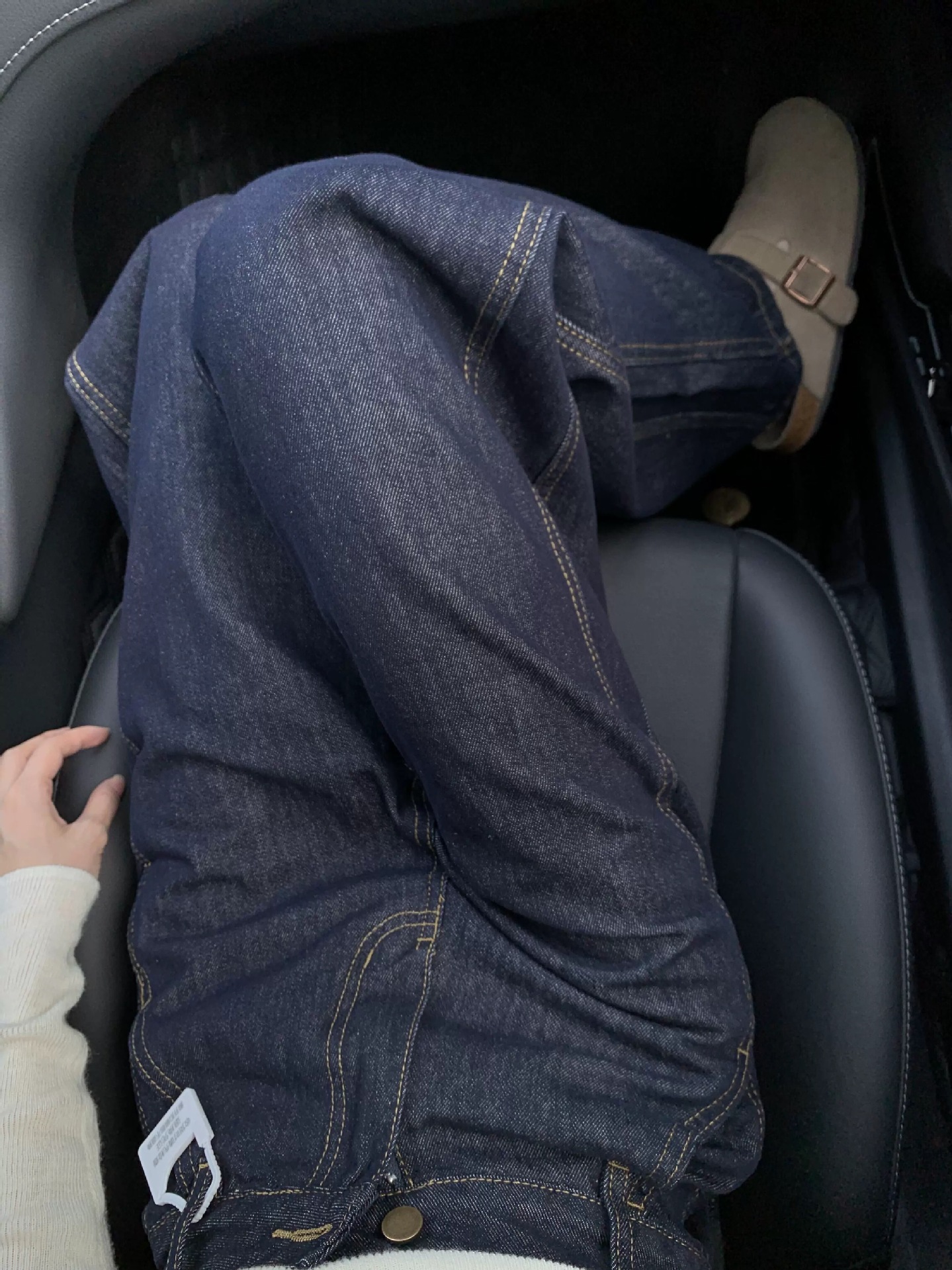 자기 유지 추천 ~ 다크 블루 직선 다리 청바지 여성의 높은 허리 느슨한 배 모양의 넓은 다리 바지스토어 가기