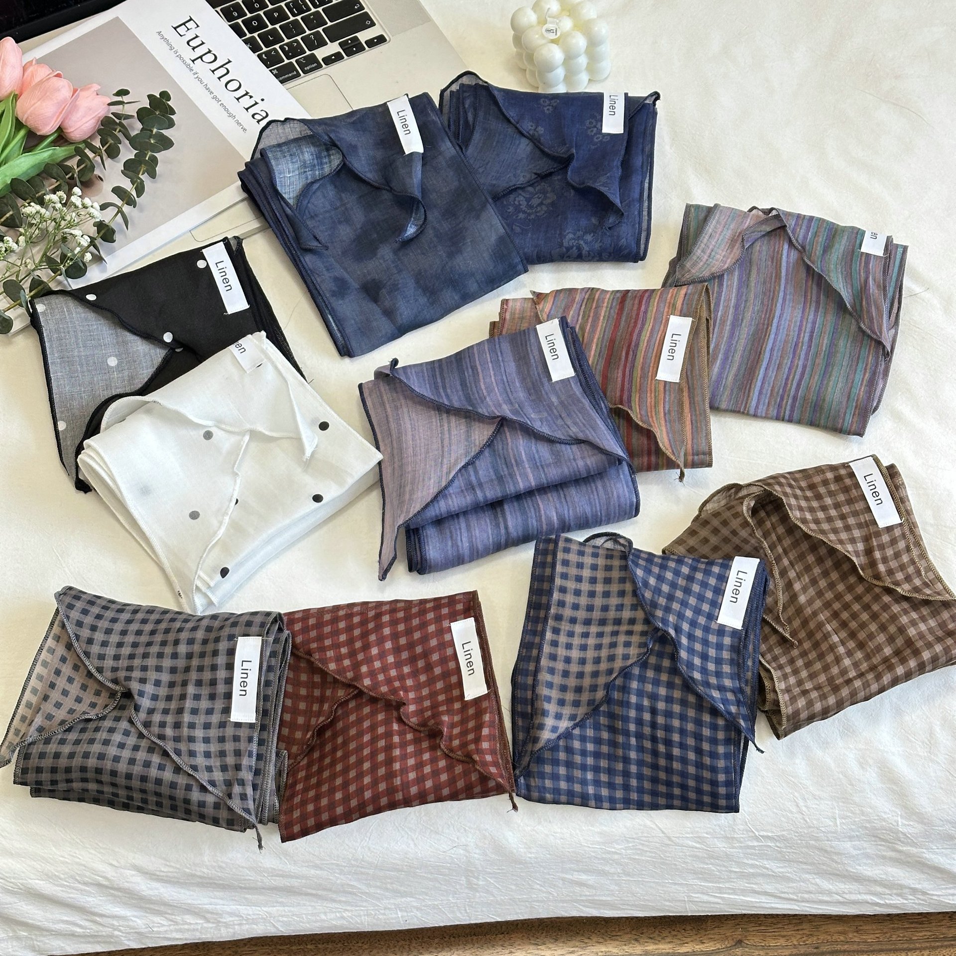 빈티지 예술적 줄무늬 스카프 한국 스타일 올 매치 패션 틈새 스카프 얇은 리본 목 보호 스카프 액세서리스토어 가기