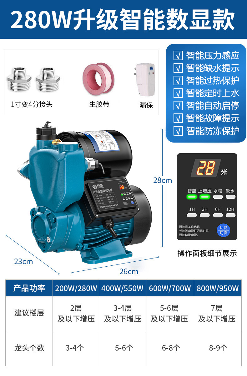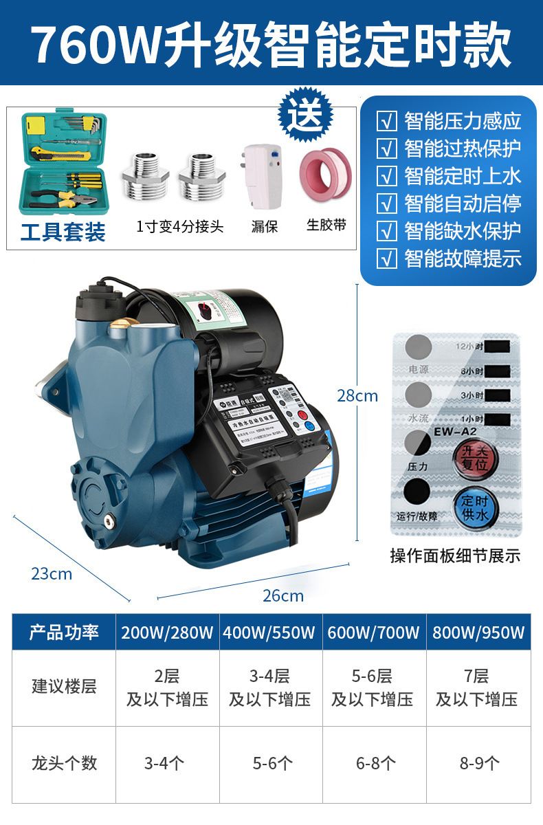 Chenyuan 가정용 부스터 펌프 수돗물 자체 프라이밍 펌프 지능형 파이프 라인 펌프 자동 부스터 펌프 주철 기타스토어 가기