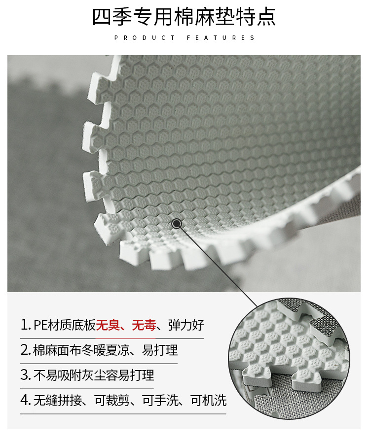2024 새로운면 및 린넨 카펫 침실 스타일 여름 발코니 룸 풀 샵 스퀘어 스티칭 바닥 매트를자를 수 있습니다.
