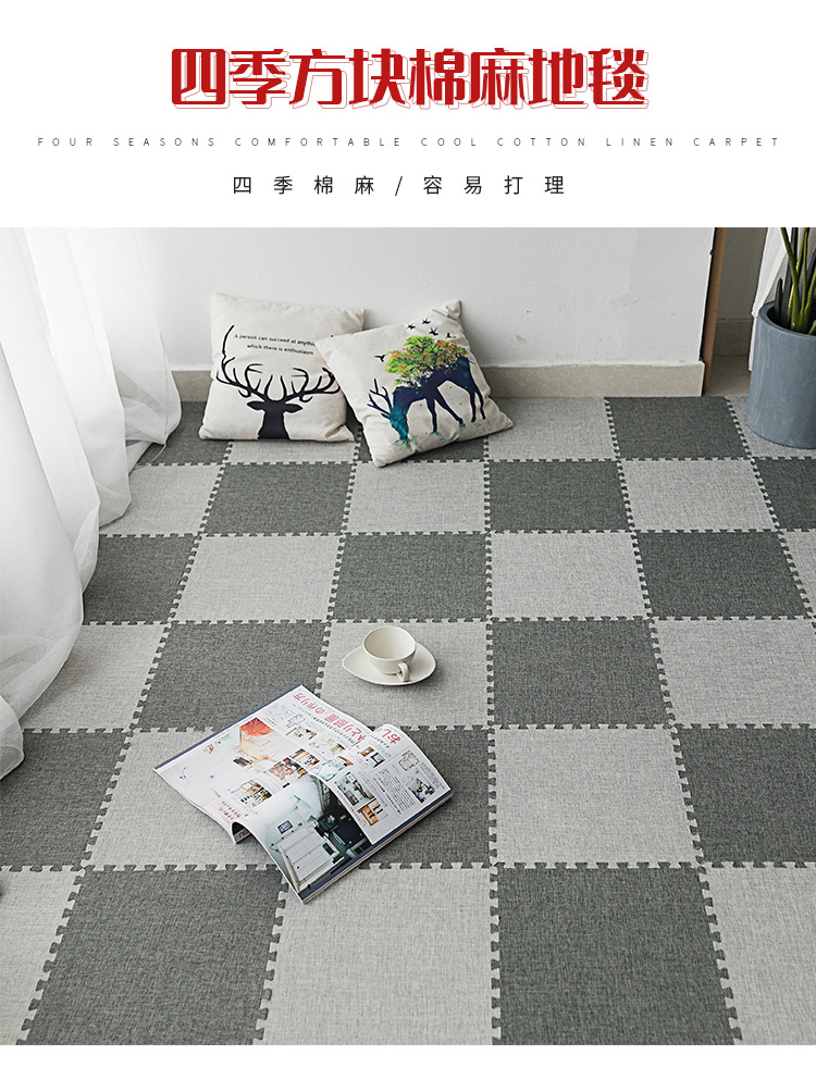 2024 새로운면 및 린넨 카펫 침실 스타일 여름 발코니 룸 풀 샵 스퀘어 스티칭 바닥 매트를자를 수 있습니다.스토어 가기