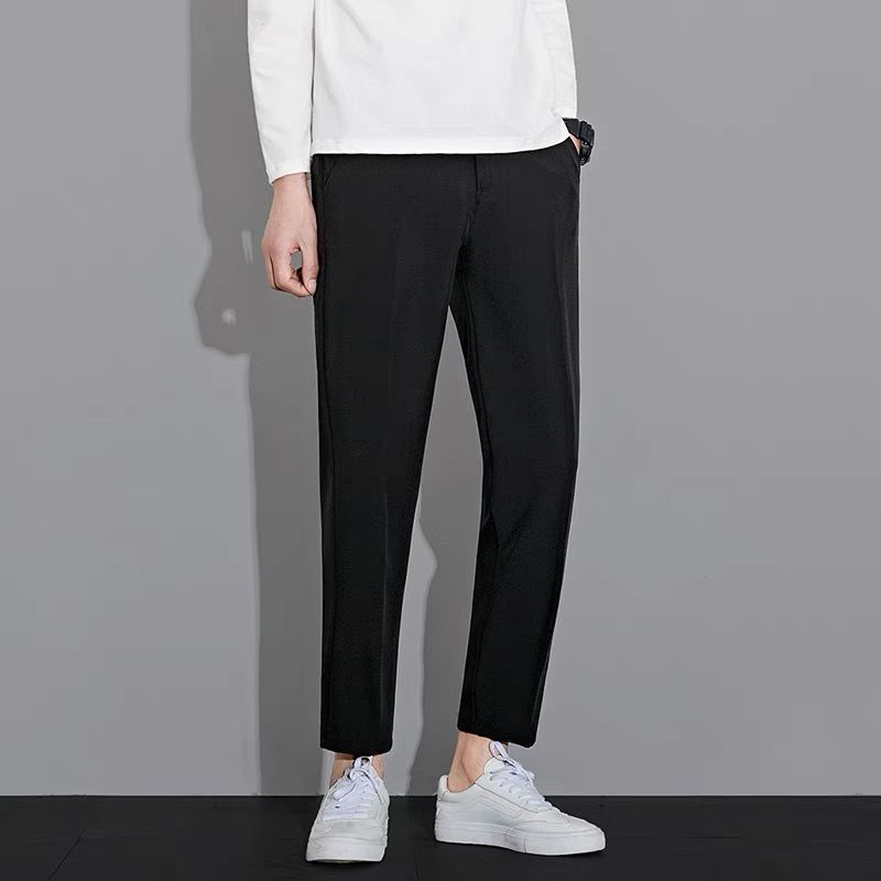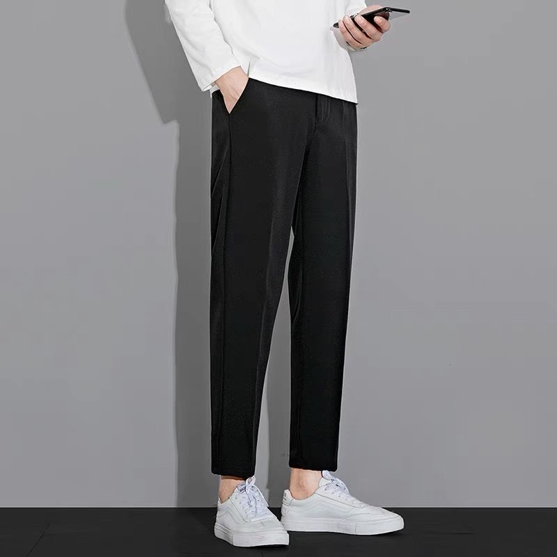 작은 세트 바지 남성용 나들목 잘린 아이스 실크 바지 여름 얇은 한국식 유행 슬림 핏 스트레이트 캐주얼 세트 바지