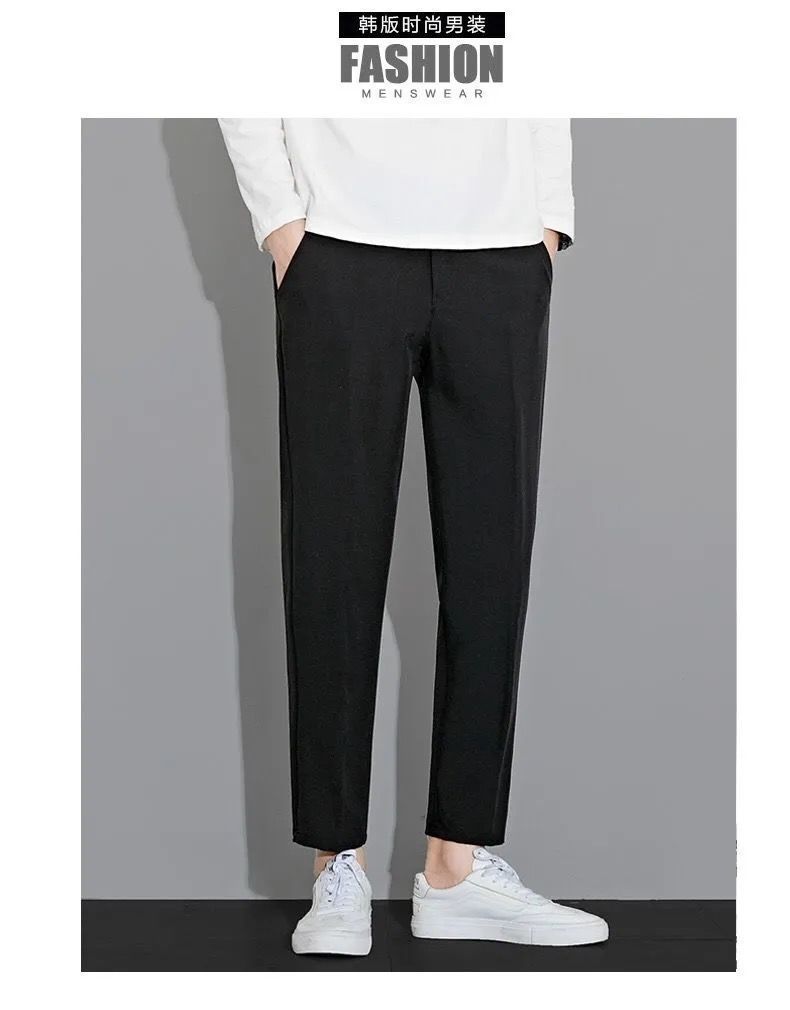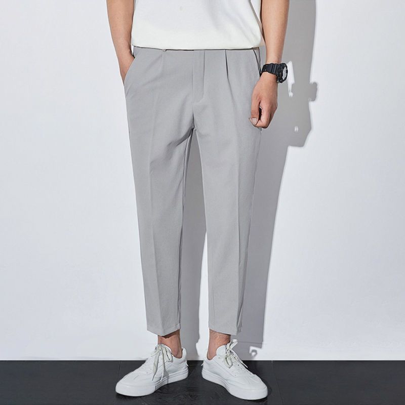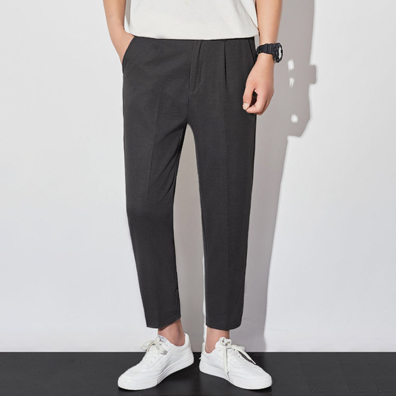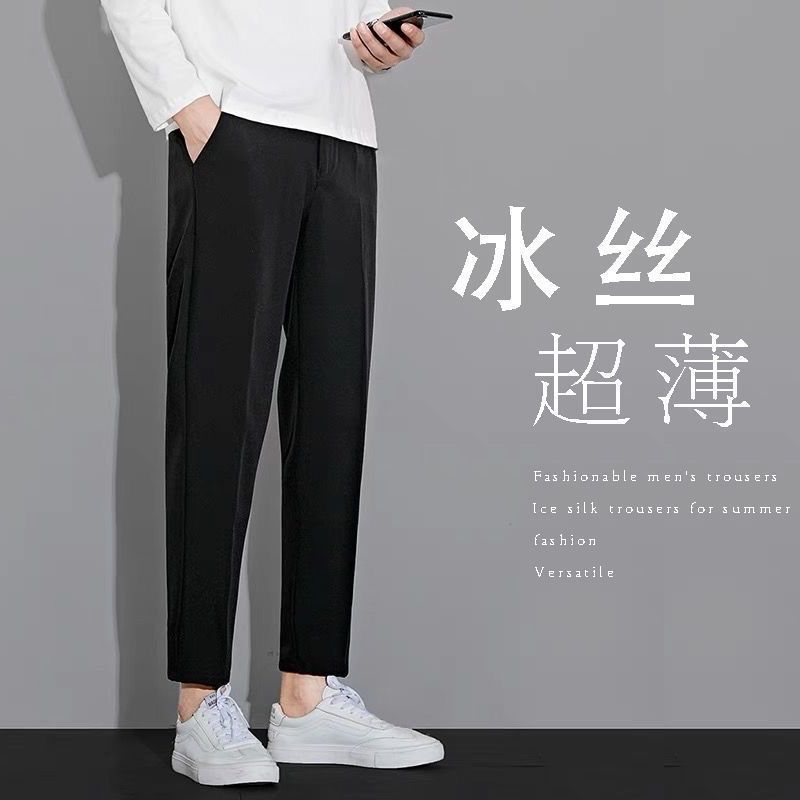 작은 세트 바지 남성용 나들목 잘린 아이스 실크 바지 여름 얇은 한국식 유행 슬림 핏 스트레이트 캐주얼 세트 바지스토어 가기