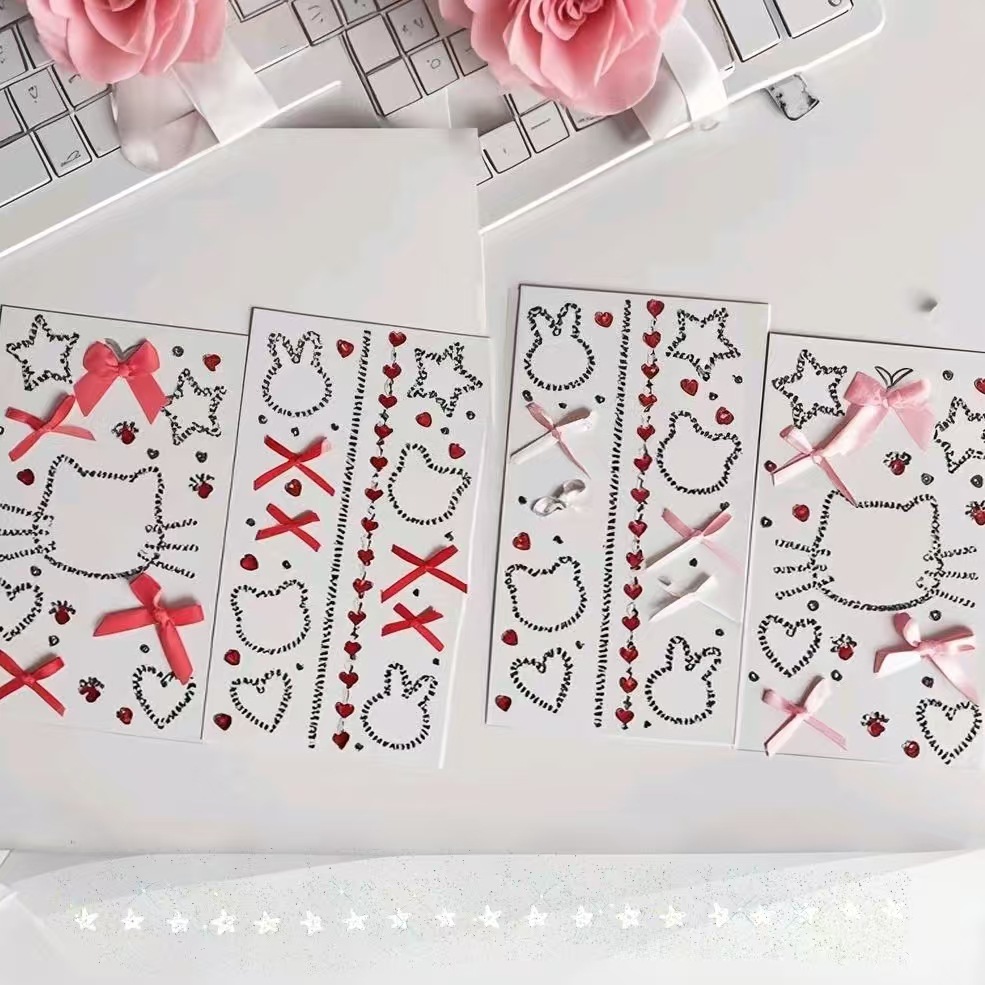 토끼 활 스티커 다이아몬드 고양이 사랑 얼굴 보석 다이아몬드 창조적 인 무대 메이크업 얼굴 장식 아이 메이크업 밝은 눈물 다이아몬드스토어 가기