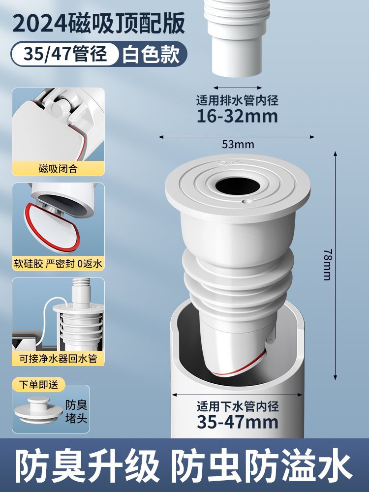 • 업그레이드된 자기흡입 [45/50mm] 화이트丨냄새방지 및 넘침방지★플러그 보내기