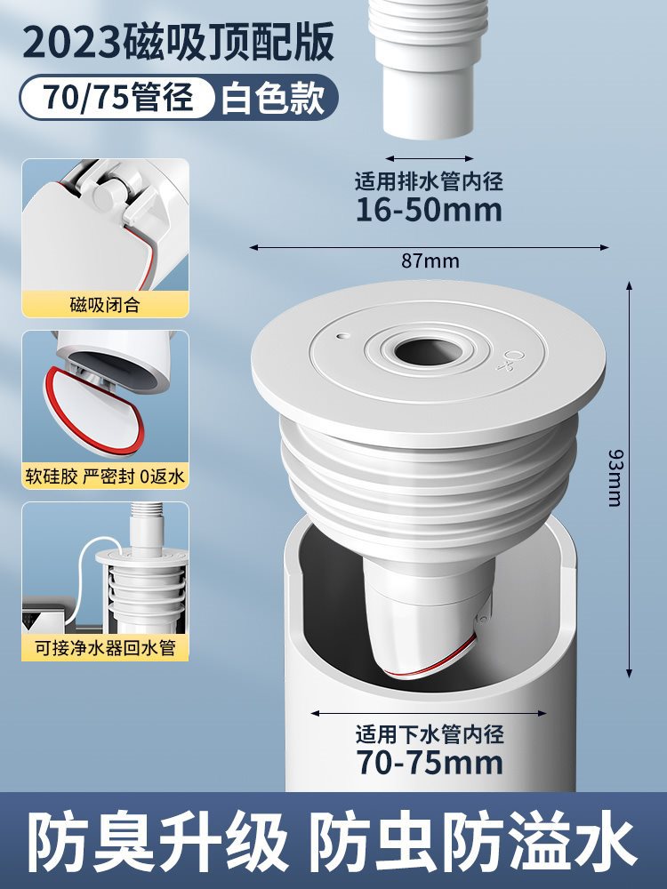 • 업그레이드된 자기흡입 [70/75mm] 화이트丨냄새방지 및 넘침방지★플러그 보내기