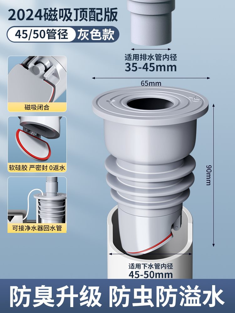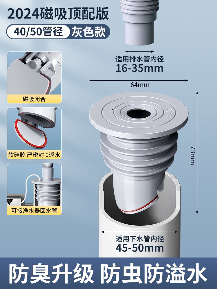 • 업그레이드된 자기흡입 [45/50mm] 그레이丨냄새방지 및 넘침방지★플러그 보내기