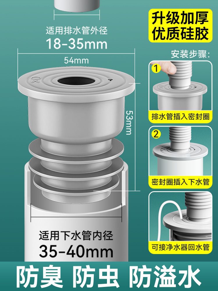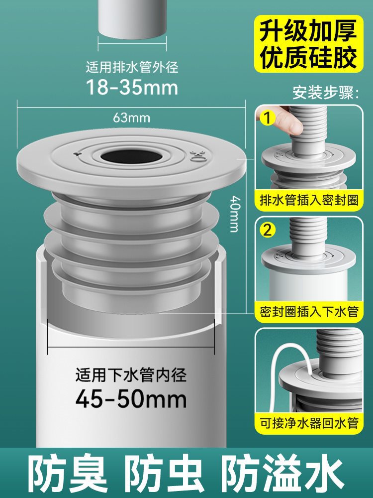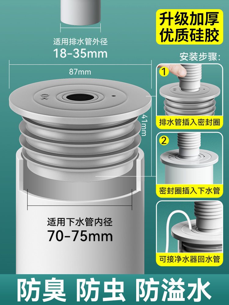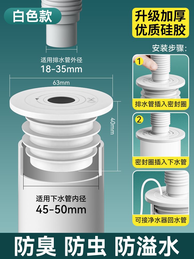 주방 하수관 밀봉 플러그 세탁기 배수 파이프 5075 밀봉 커버 실리콘 링 냄새 방지 차단스토어 가기
