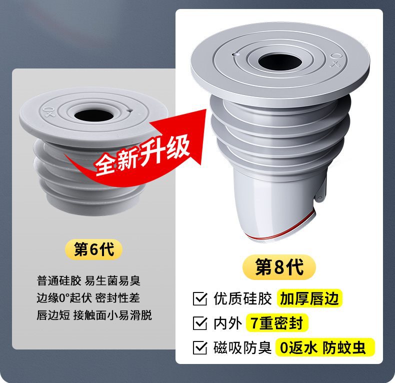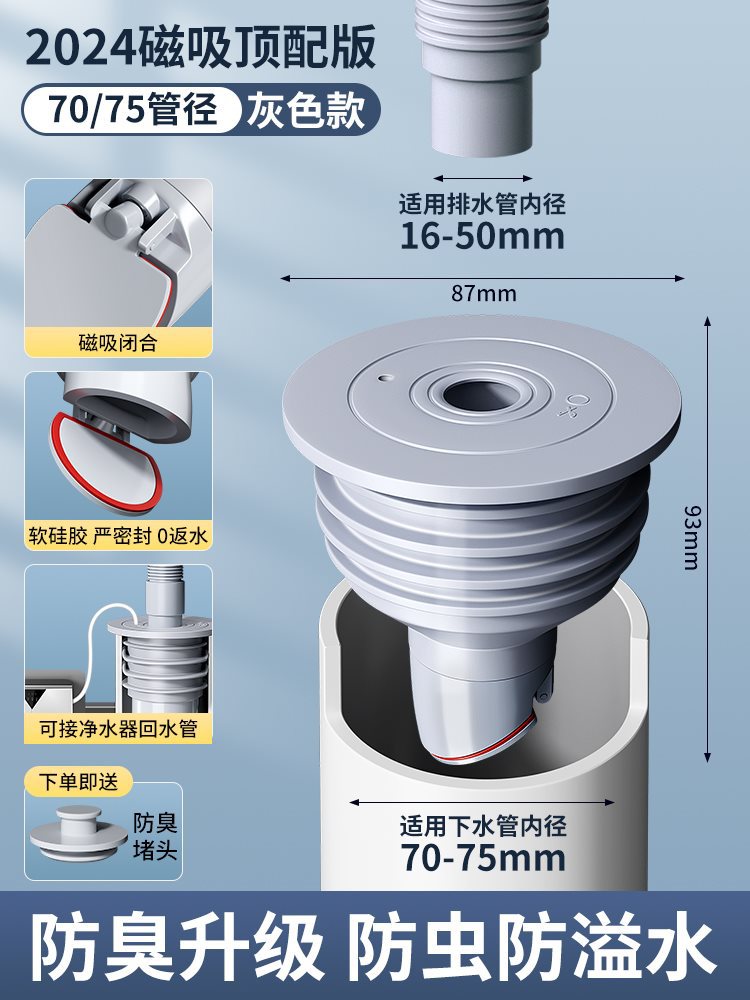 • 업그레이드된 자기흡입 [70/75mm] 그레이丨냄새방지 및 넘침방지★플러그 보내기
