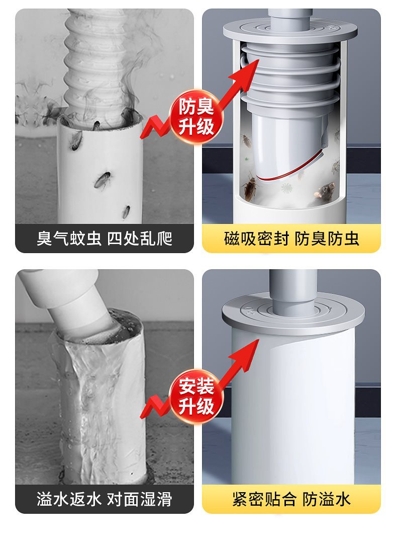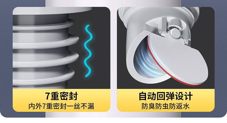 • 업그레이드된 자기흡입 [45/50mm] 그레이丨냄새방지 및 넘침방지