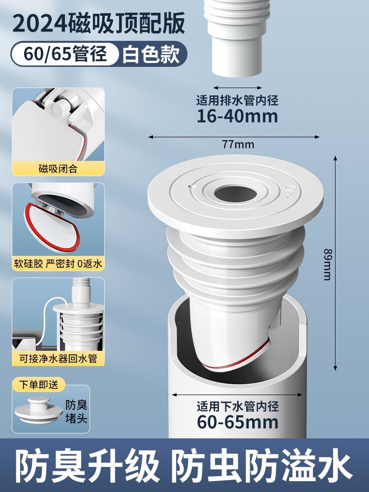 • 업그레이드된 자기 흡입 [60/65mm] 흰색 | 냄새 방지 및 넘침 방지★플러그 보내기