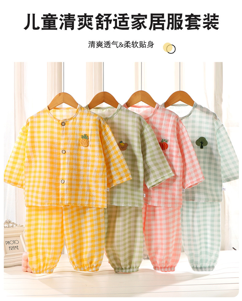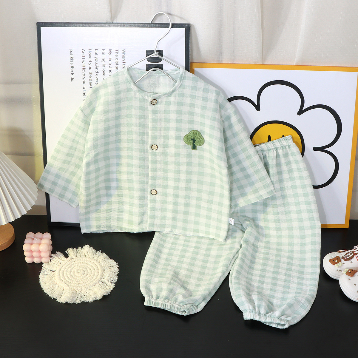 소년 소녀 구름 면화 홈 의류 세트 여름 카디건 만화 어린이 잠옷 탑 바지 봄과 가을 투피스 세트