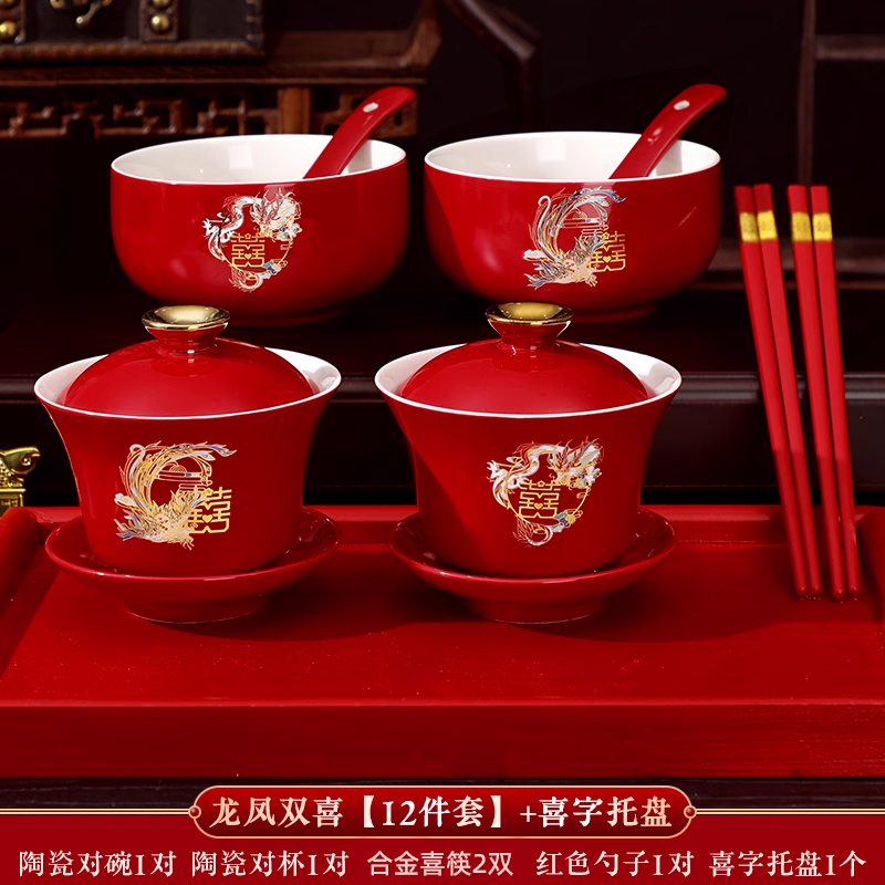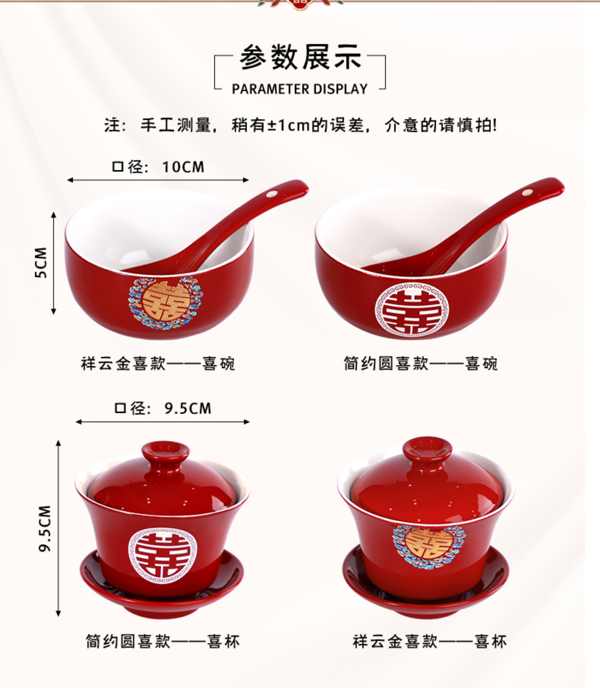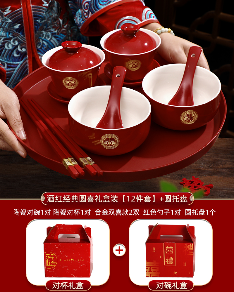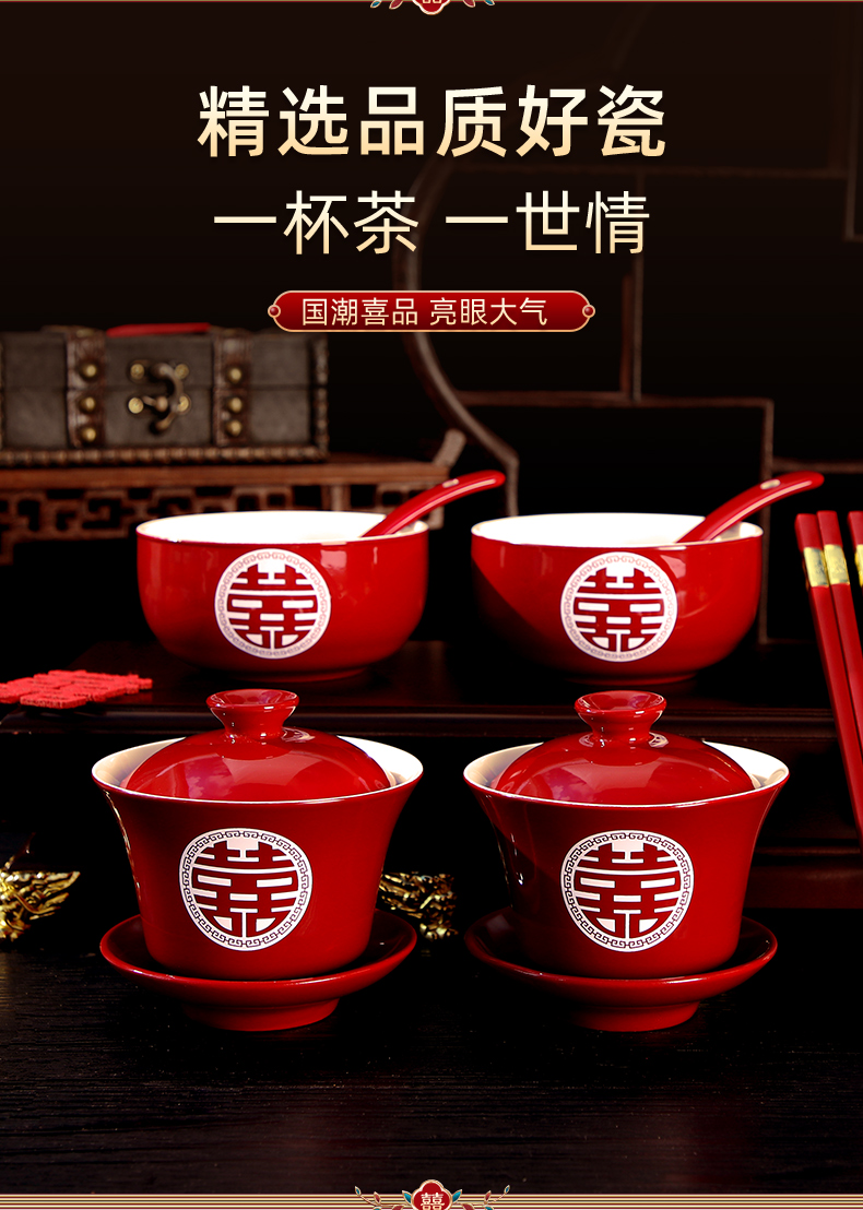 • 위안시경 찻잔 14종 세트 (세라믹 컵 + 세라믹 그릇 + 웨딩 젓가락 + 위안시 트레이 + 차 감사 빨간 봉투 2개)