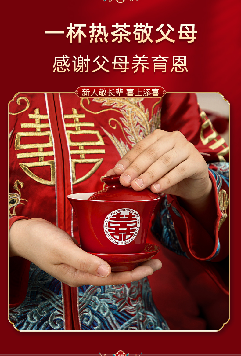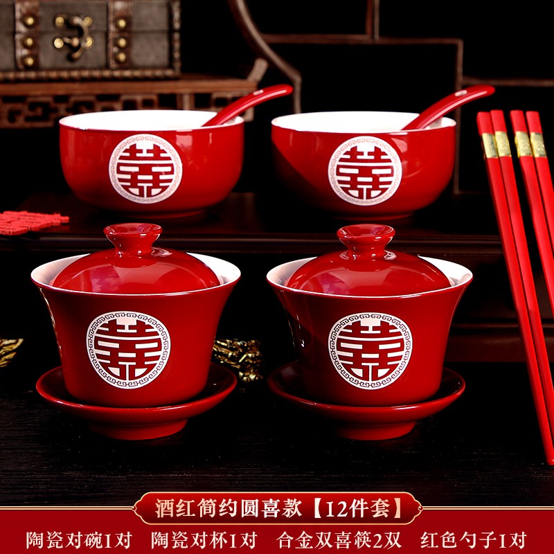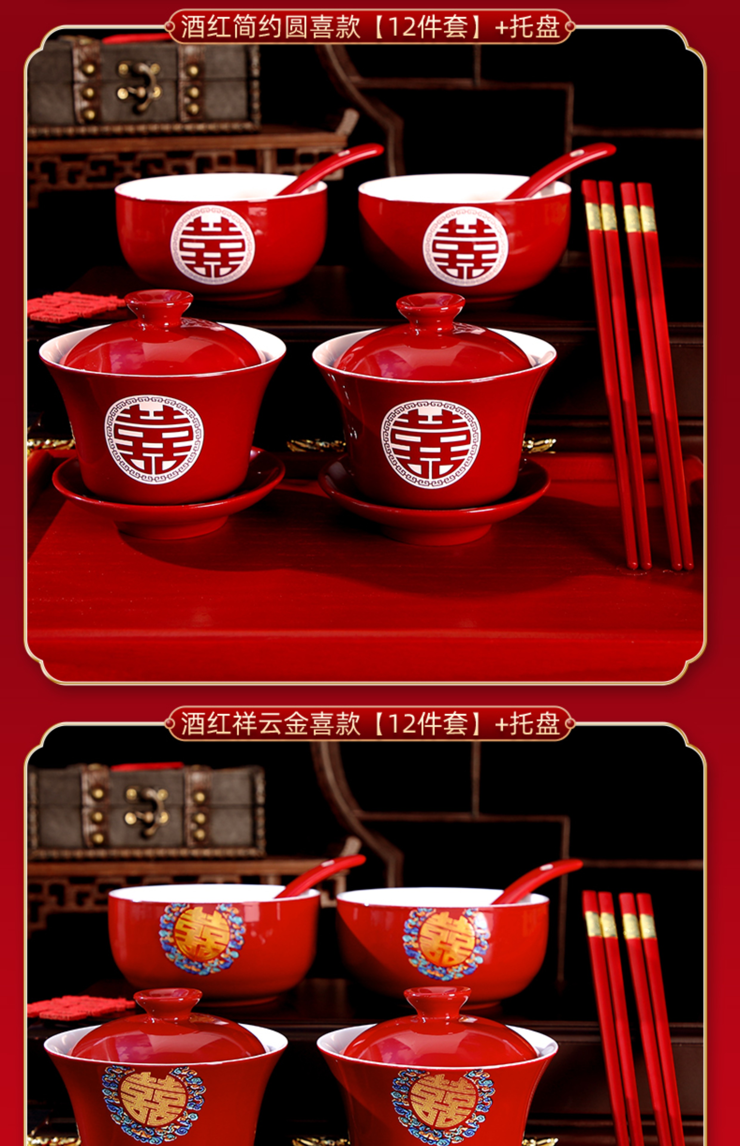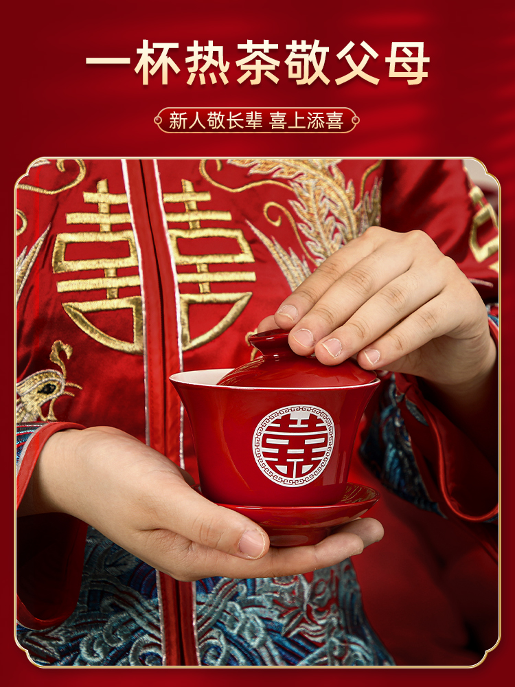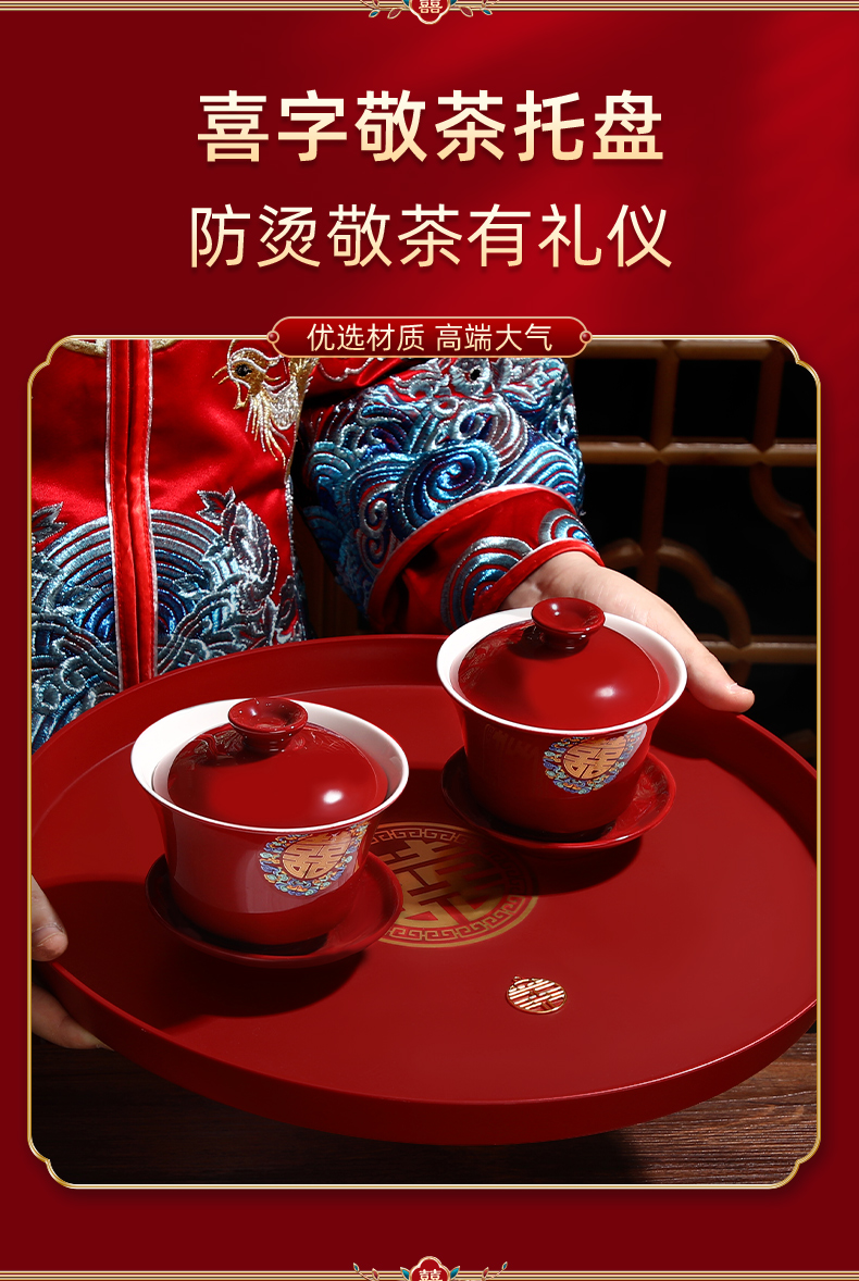 • 위안시경 찻잔 14종 세트 (세라믹 컵 + 세라믹 그릇 + 웨딩 젓가락 + 위안시 트레이 + 차 감사 빨간 봉투 2개)