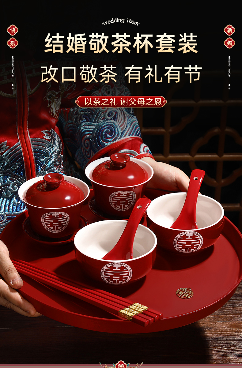 티 컵 웨딩 그릇 변경 차 세트 젓가락 컵 웨딩 토스트와 함께 세트 공급