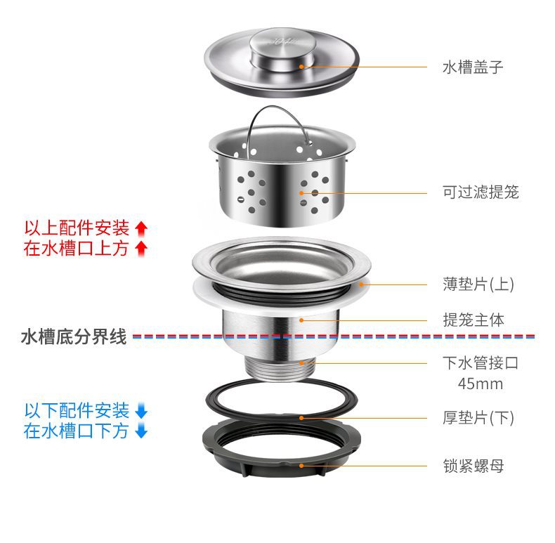 주방 야채 분지 서랍 싱크 싱크 서랍 파이프 세트 누설 플러그 배수 피팅 110 하수구
