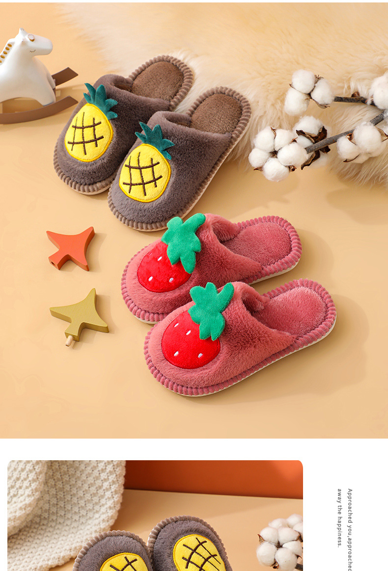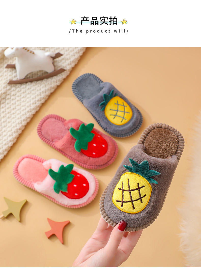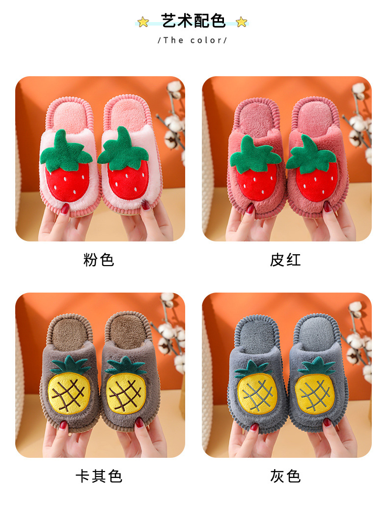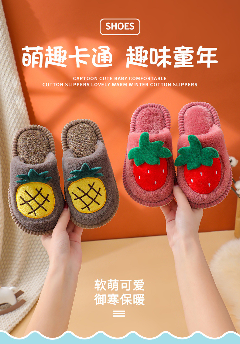 소년 소녀를위한 어린이 면화 슬리퍼 만화 귀여운 가을과 겨울 새로운 딸기 실내 미끄럼 방지 따뜻한 아기 면화 슬리퍼