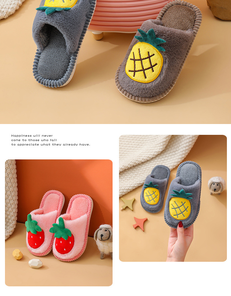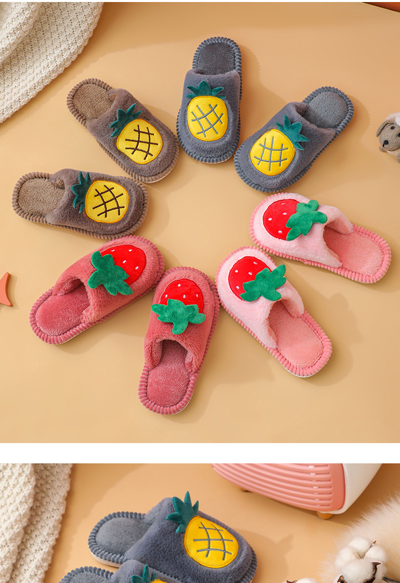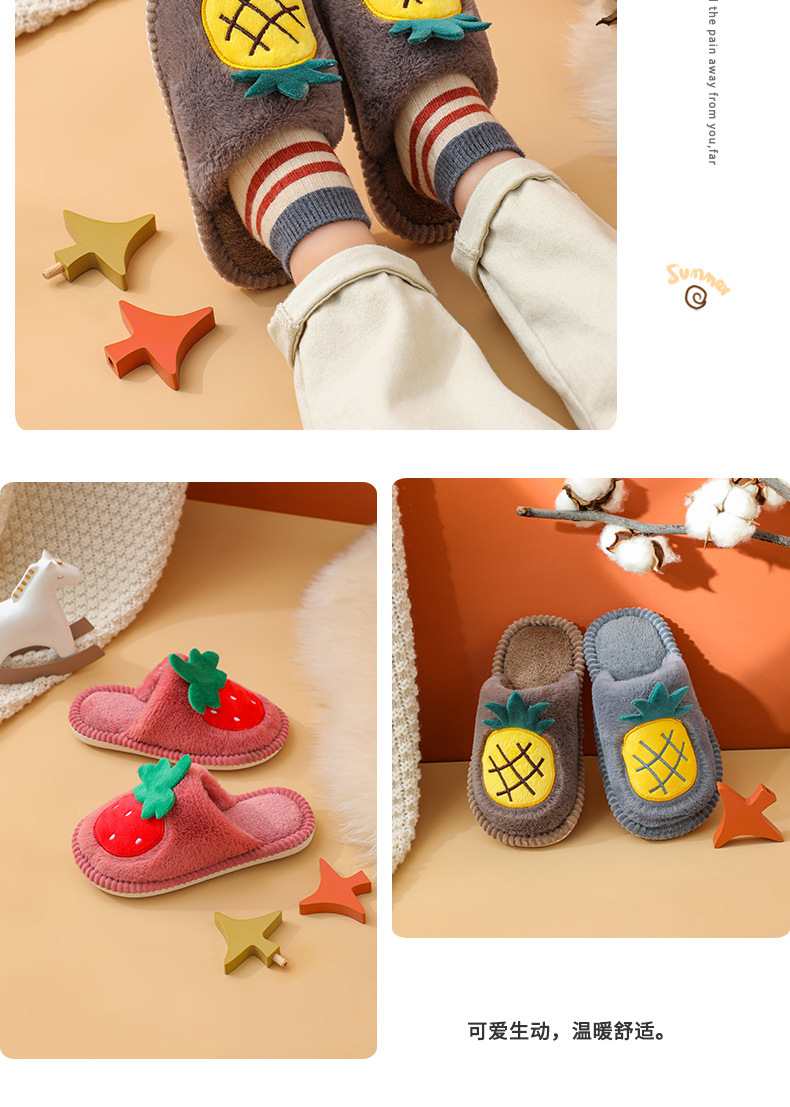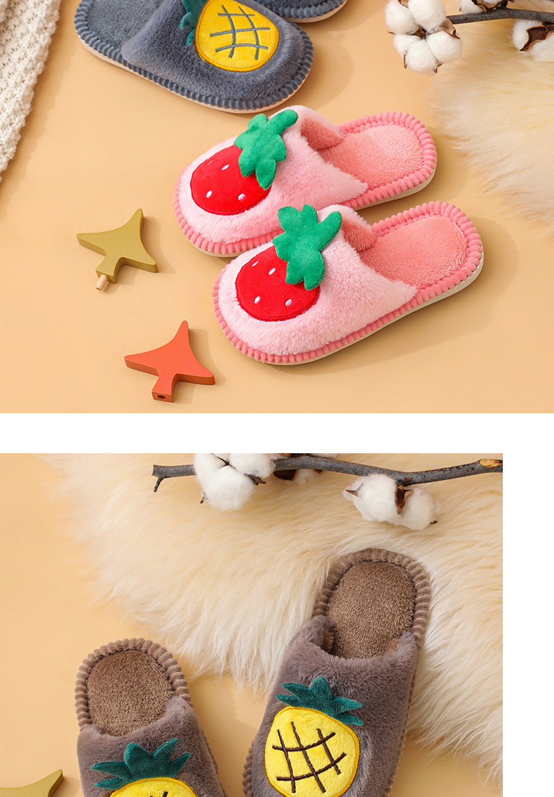 소년 소녀를위한 어린이 면화 슬리퍼 만화 귀여운 가을과 겨울 새로운 딸기 실내 미끄럼 방지 따뜻한 아기 면화 슬리퍼