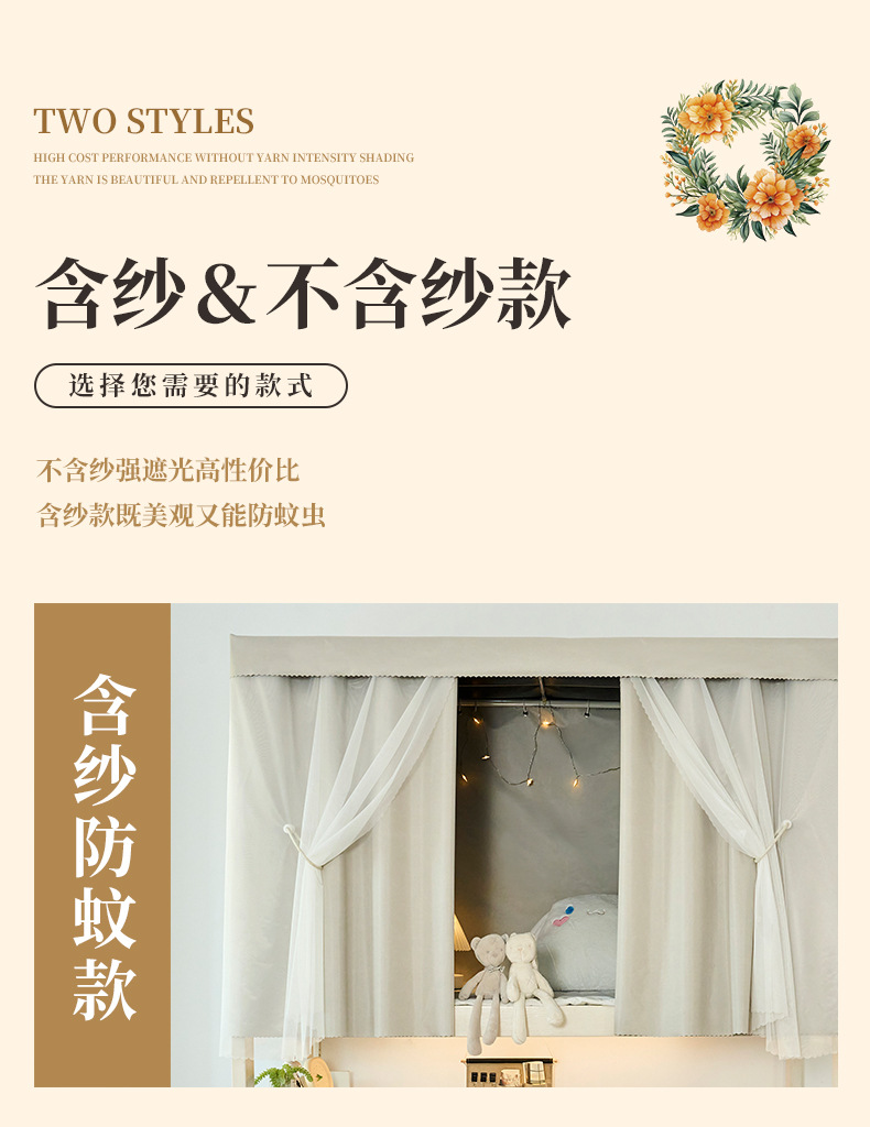 대학생 기숙사 침대 커튼 두꺼운 강한 블라인드 커튼 상부 침실 낮은 블라인드 여성 모기장 블라인드 네트 블라인드 커튼스토어 가기