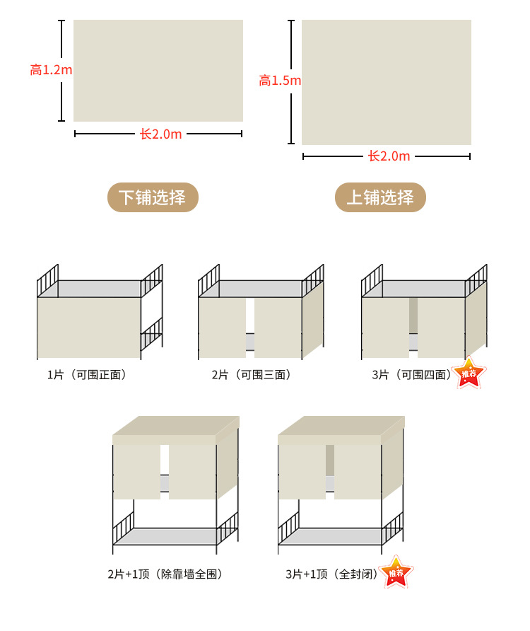 • 높이 1.5m [3개] 주변 둘레, 하단 침대에 권장