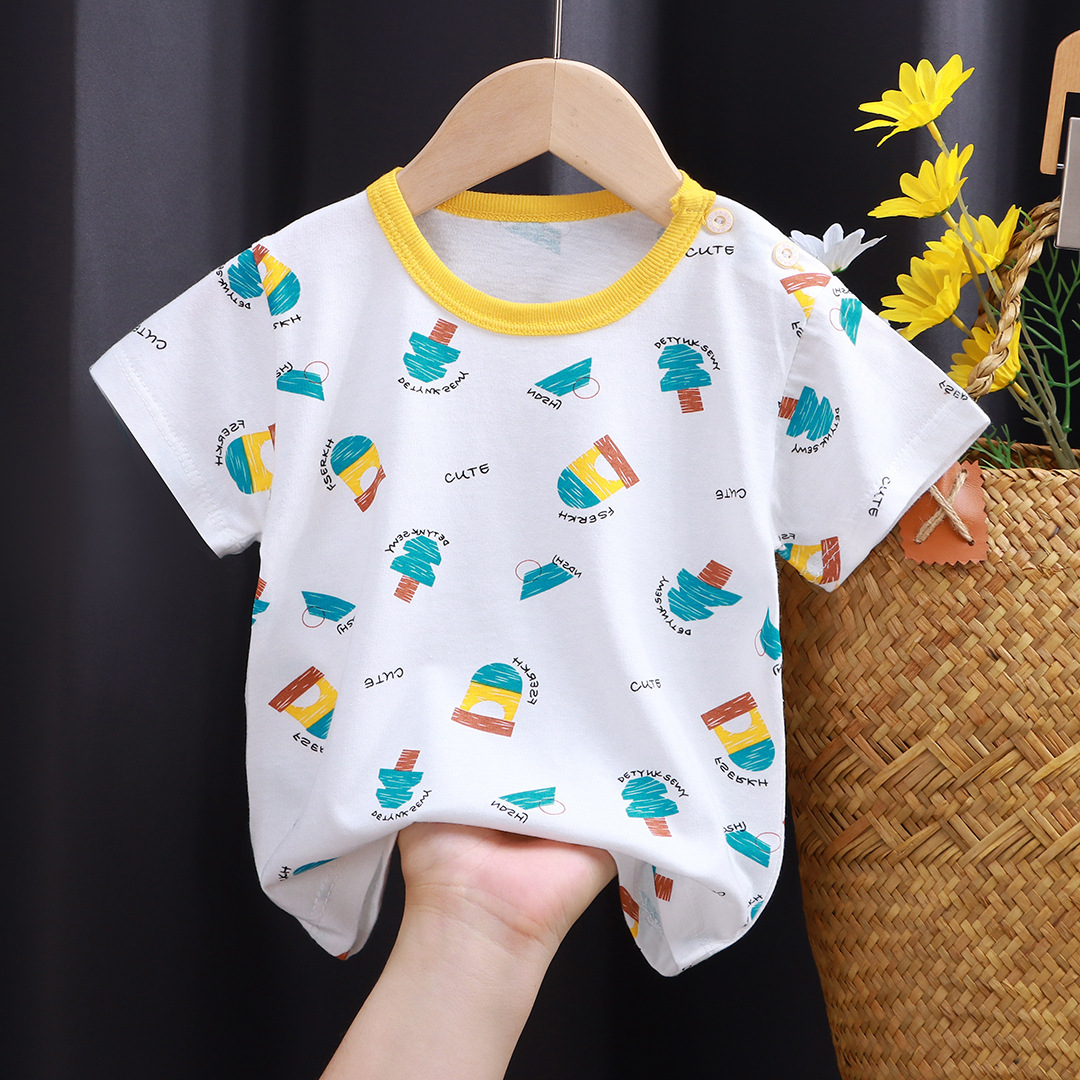 여름 어린이 반팔 티셔츠 코튼 소녀 여름 아기 아동복 새 소년 자켓 머리카락 세대스토어 가기