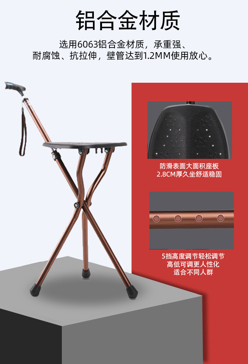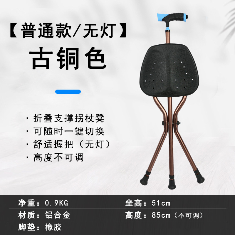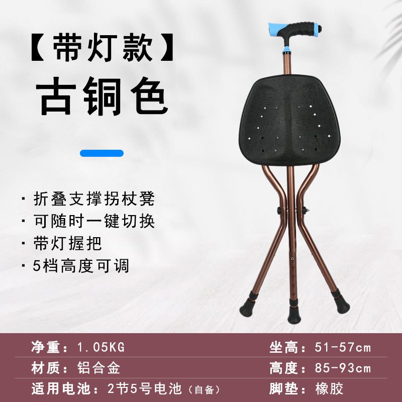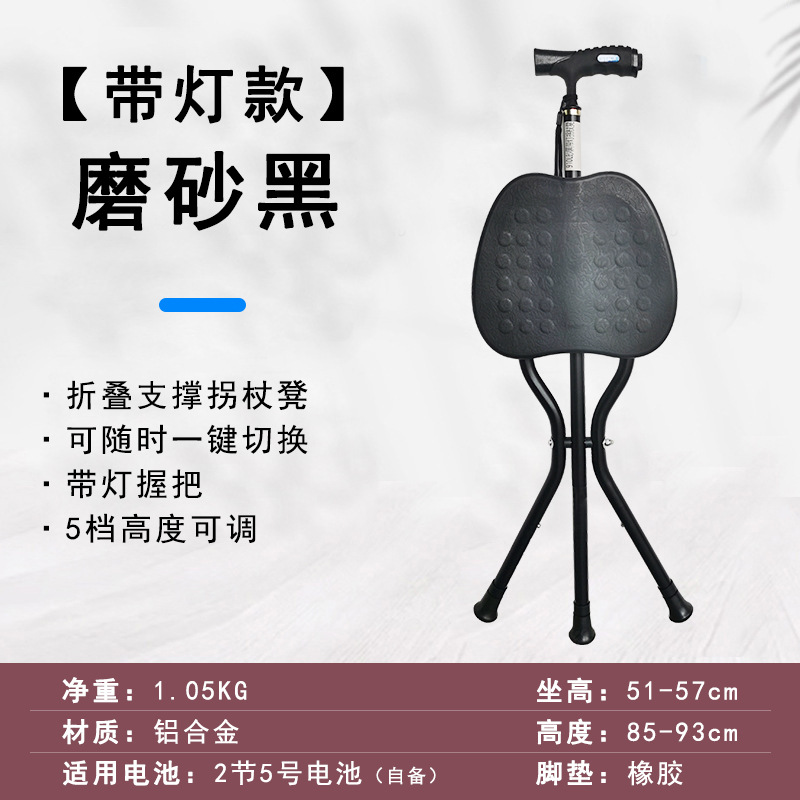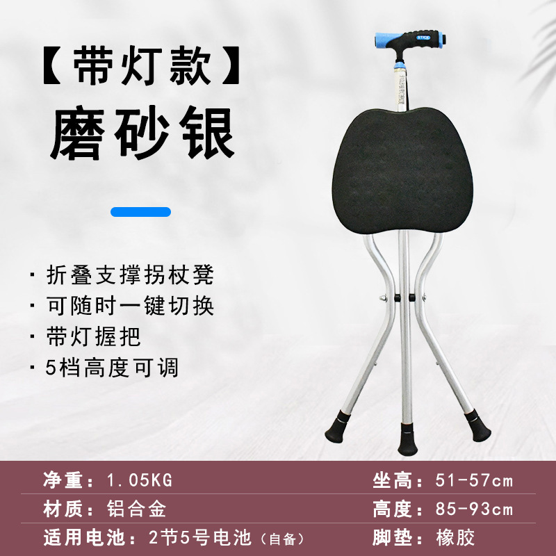 轻量化便携式拐杖折叠椅带灯老人散步辅助行走防滑三脚拐棍凳可坐
