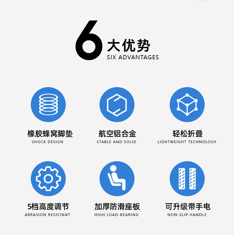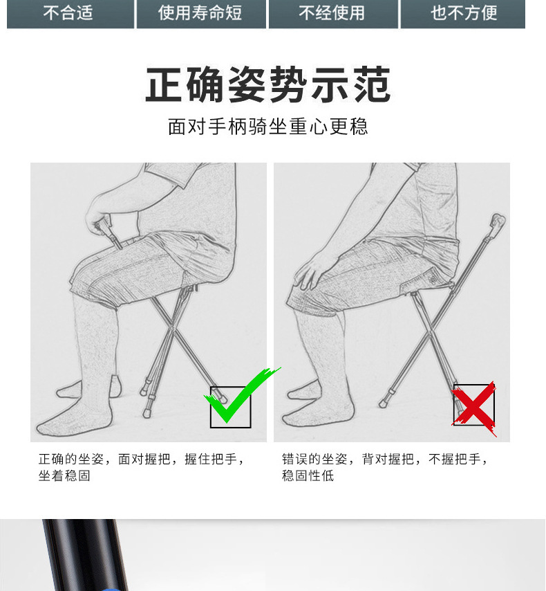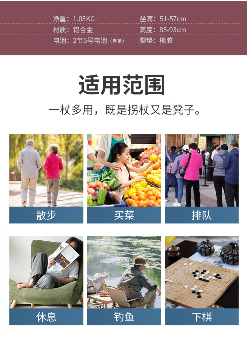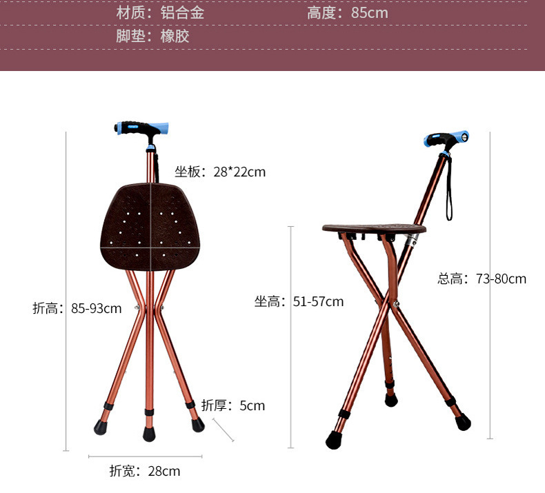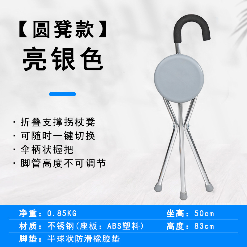 轻量化便携式拐杖折叠椅带灯老人散步辅助行走防滑三脚拐棍凳可坐