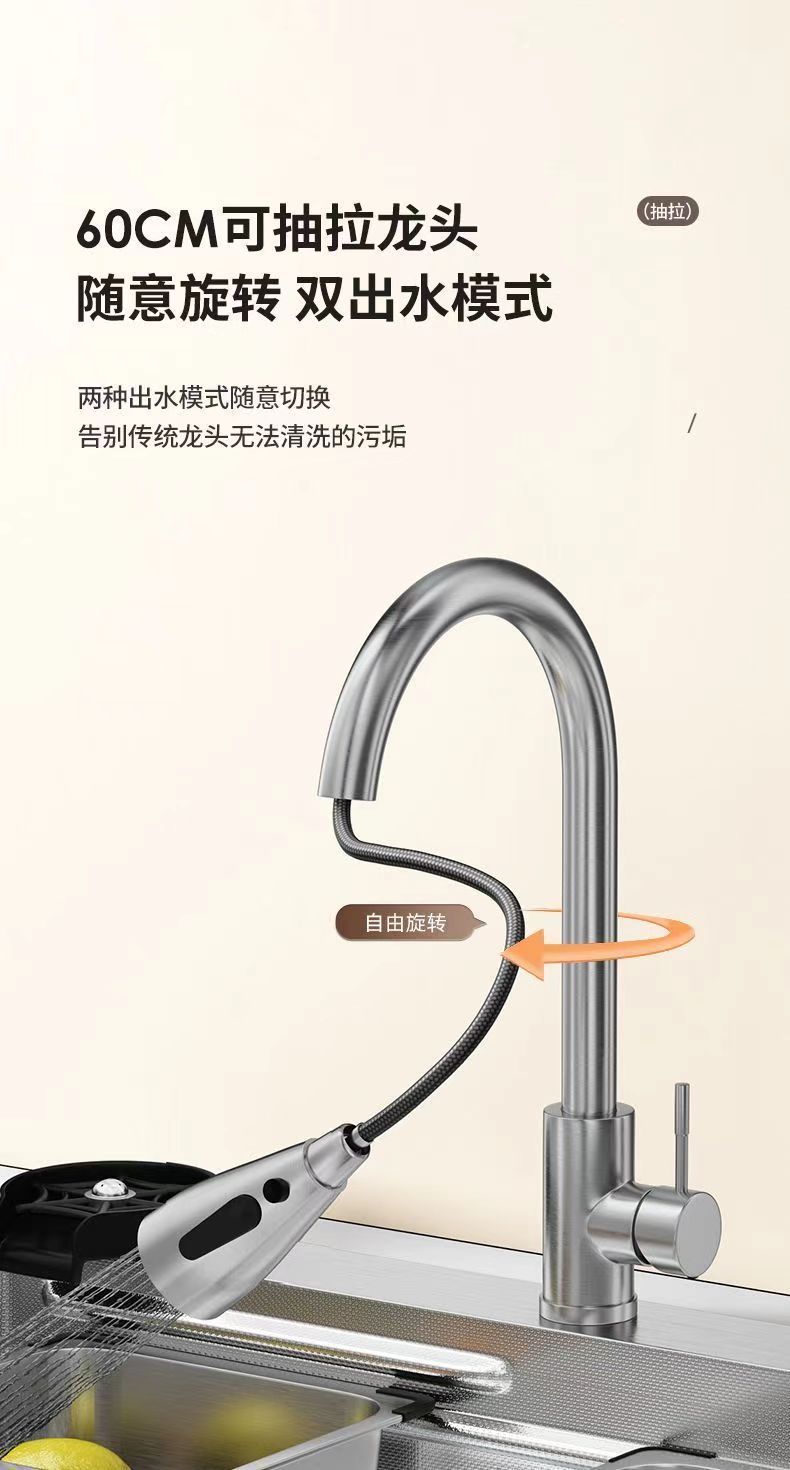 • 360도 회전 인출식 수전 + 비누 디스펜서 [액세서리 풀세트 조립] - 3D 입체 엠보싱 72*45cm (10년 보증)