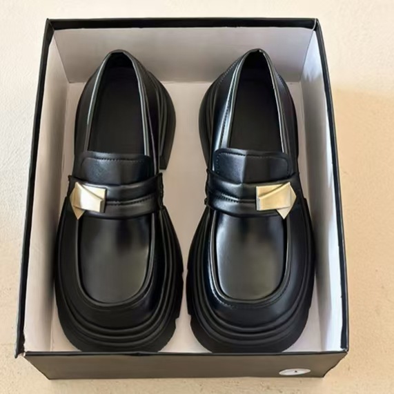 블랙 두꺼운 밑창 영국식 가죽 신발 여성용 빈티지 메리 제인 슬립 온 로퍼 싱글 레이어 신발 2025 봄과 가을 뉴스토어 가기