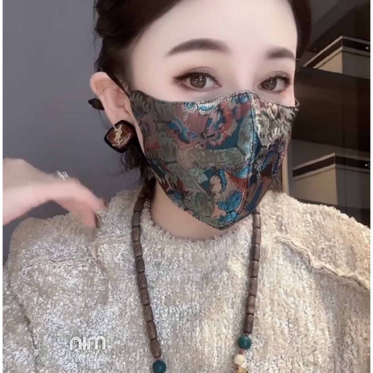 브닝 니언 드래곤 프린트 새틴 국가 패션 중공업 마스크 가을과 겨울 선 스크린 마스크 면없는 따뜻한 패션스토어 가기