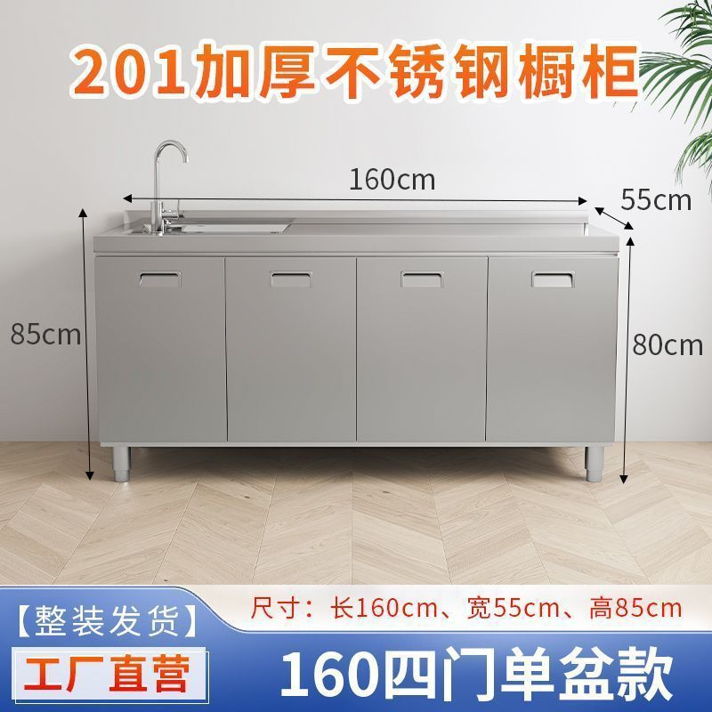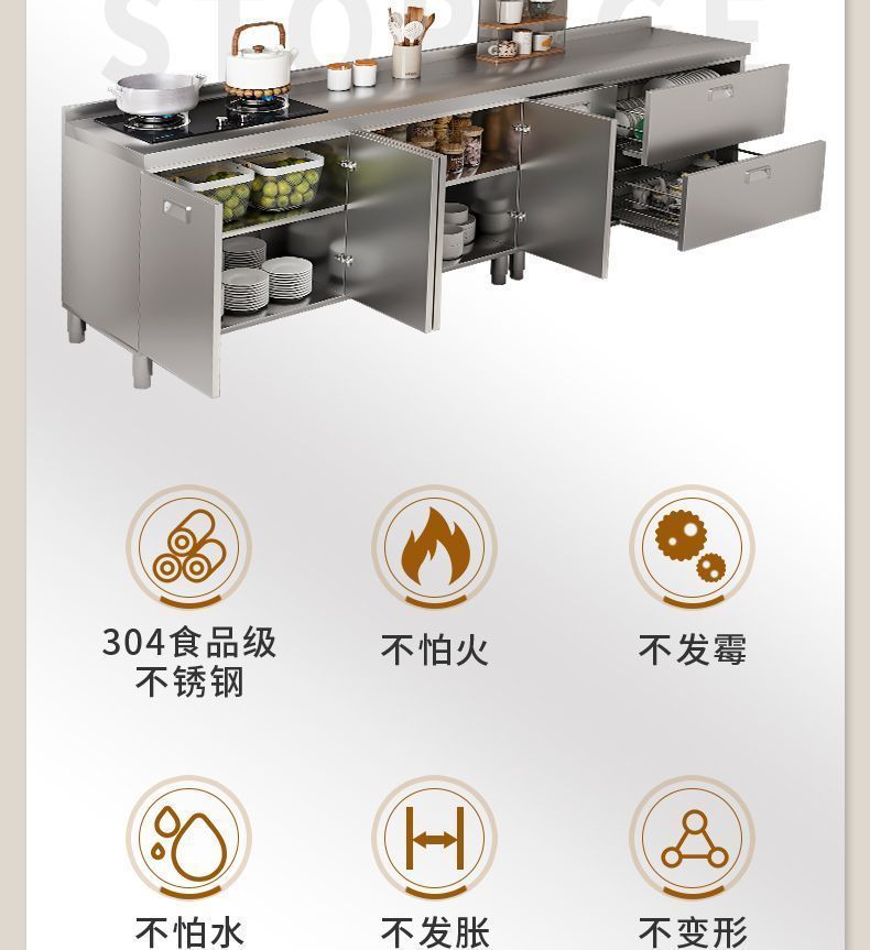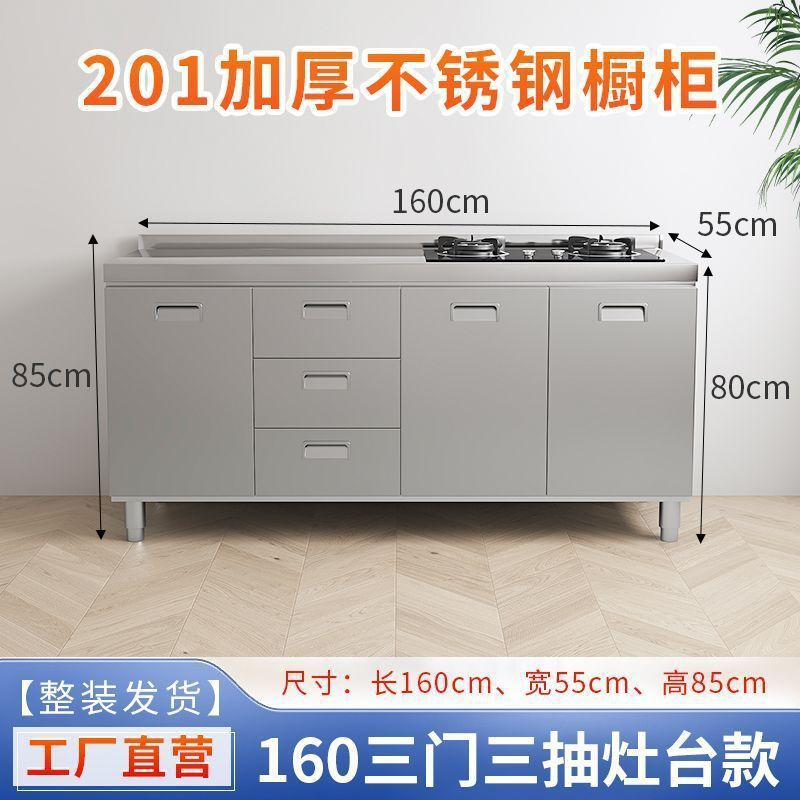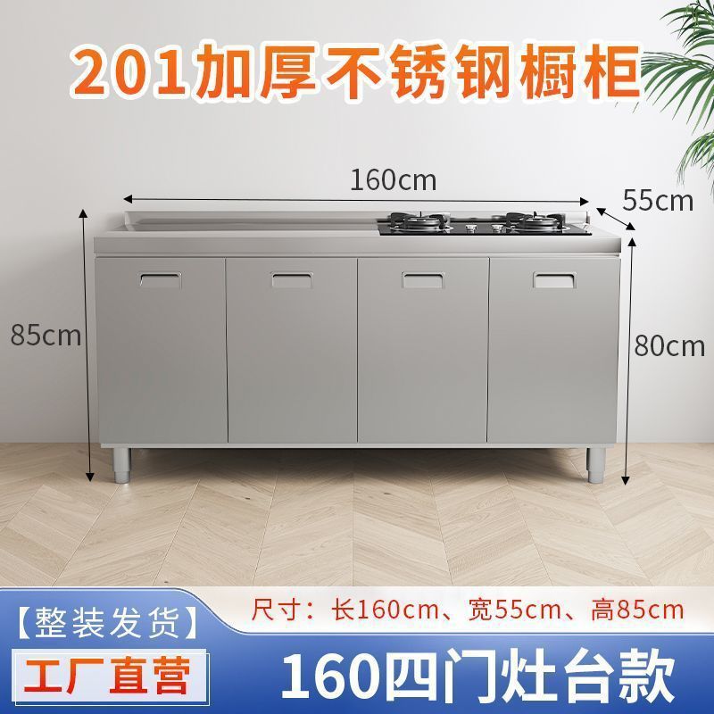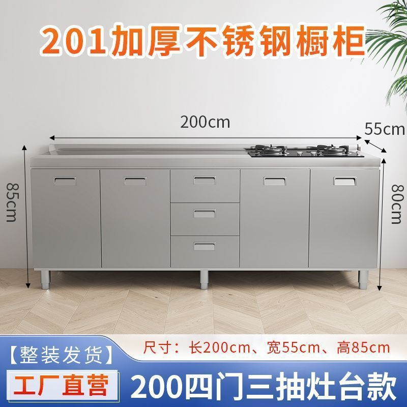 304 통합 두꺼운 스테인레스 스틸 캐비닛 설치-무료 통합 주방 스토브 카운터 캐비닛 가정용 작은 아파트스토어 가기