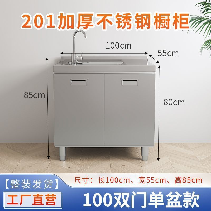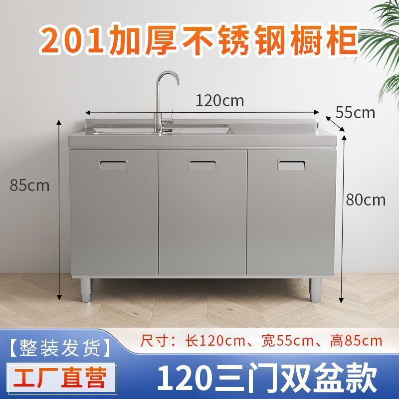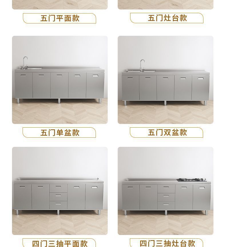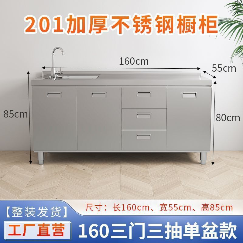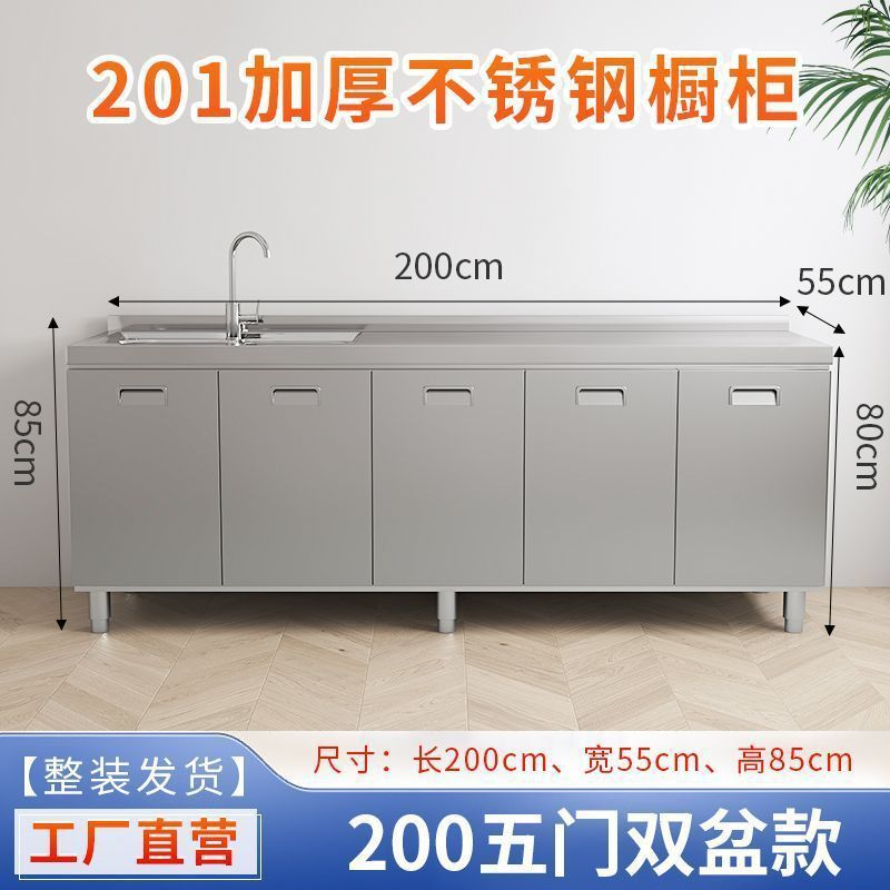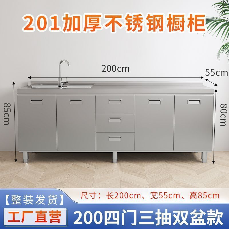 304 통합 두꺼운 스테인레스 스틸 캐비닛 설치-무료 통합 주방 스토브 카운터 캐비닛 가정용 작은 아파트스토어 가기