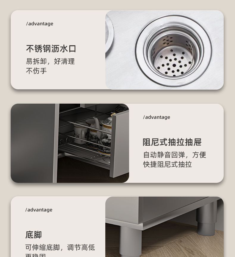 304 통합 두꺼운 스테인레스 스틸 캐비닛 설치-무료 통합 주방 스토브 카운터 캐비닛 가정용 작은 아파트