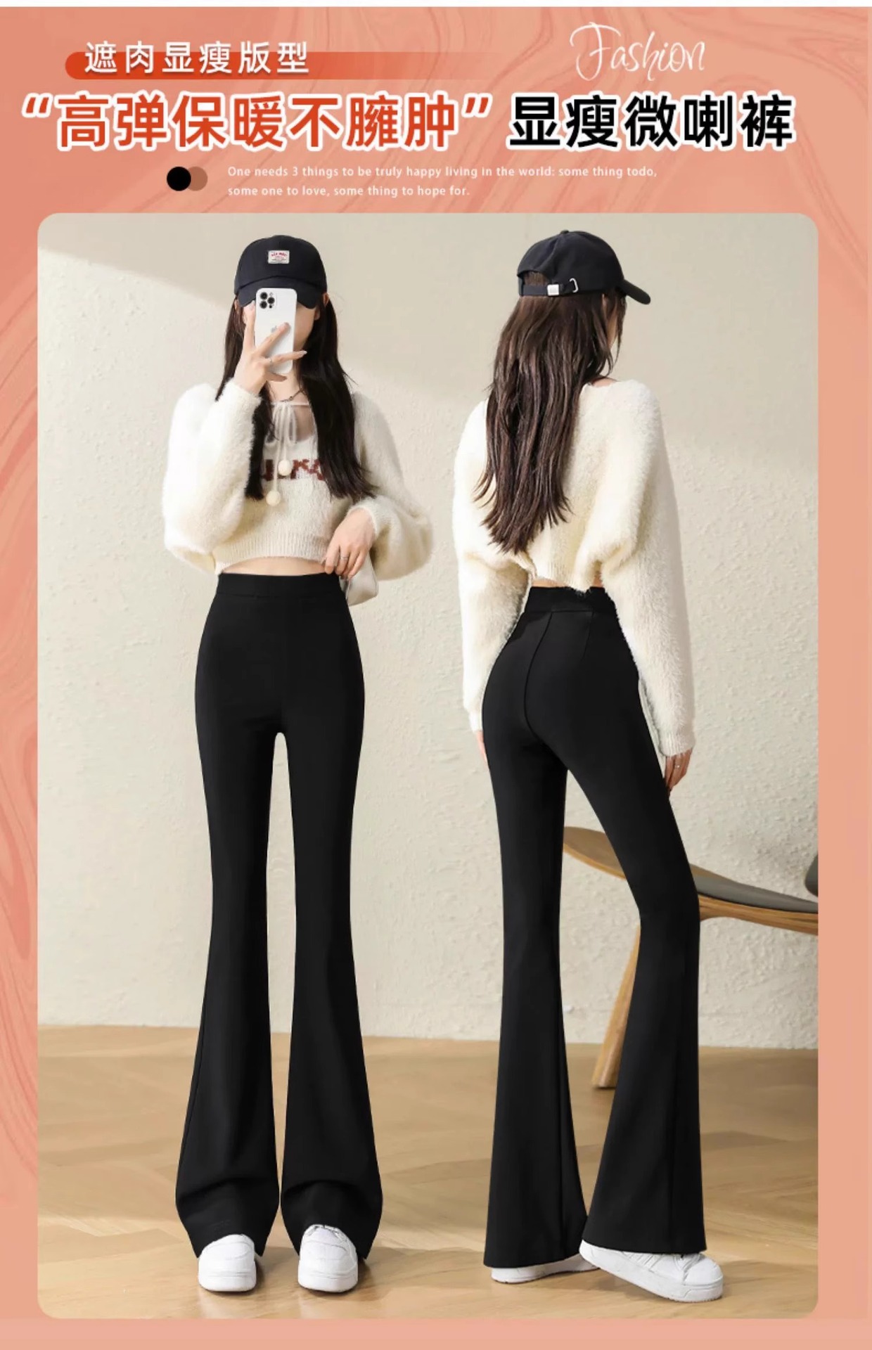 꽃 무늬 바지 여자 2025 년 새로운 봄과 가을 높은 허리 슬리밍 스트레치 바지 여름 블랙 약간의 바지