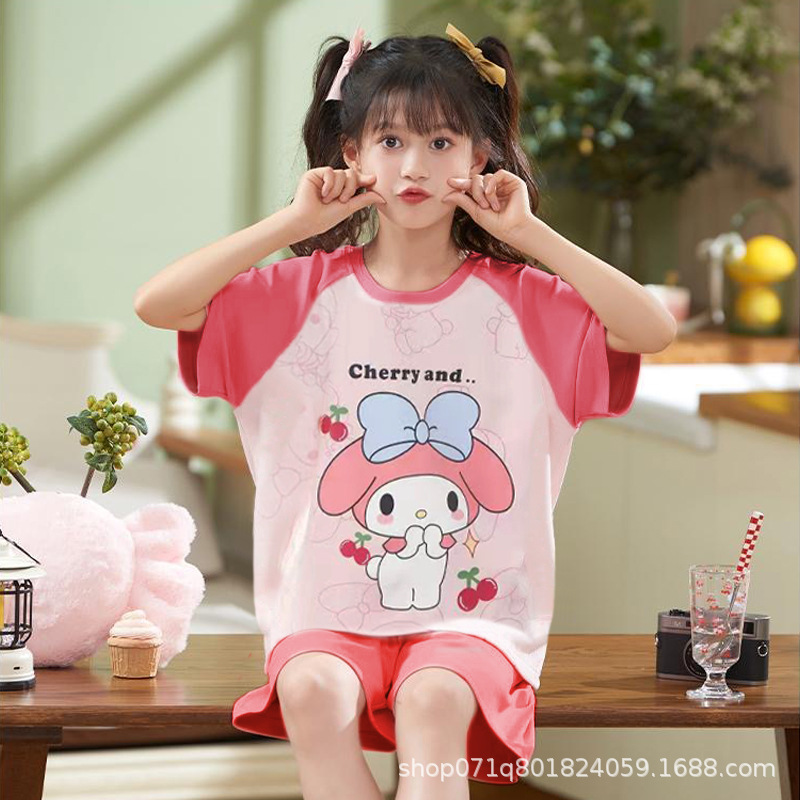 [소스 제조업체] 여름 어린이 잠옷 세트 소녀 짧은 소매 아기 얇은 소녀 큰 아이들의 집 옷
