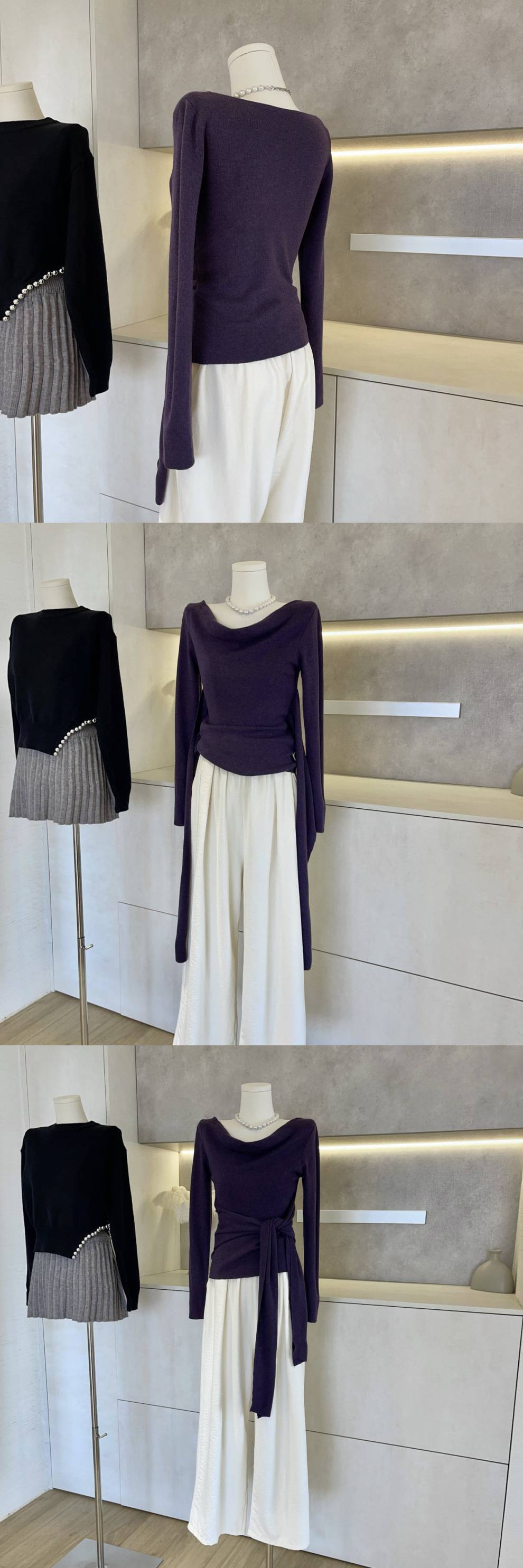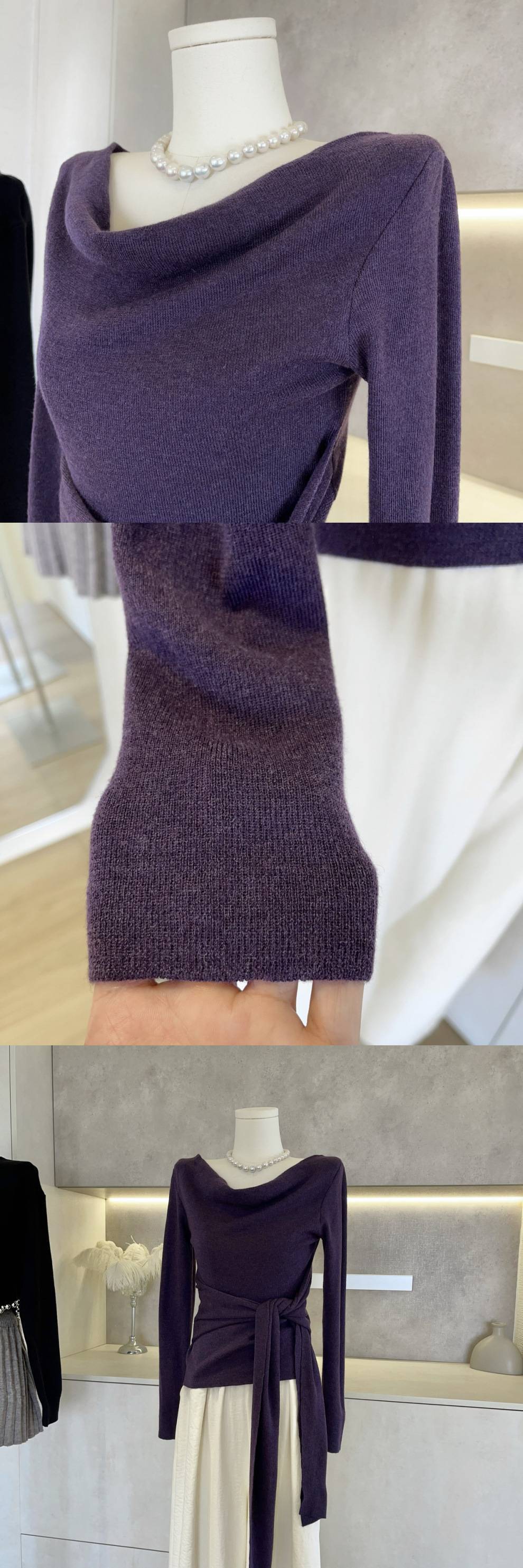 봄 이른 봄 2025 한국 디자인 최고 여성 슬림 핏 슬리밍 리본 매듭베이스 스웨터 트렌디스토어 가기