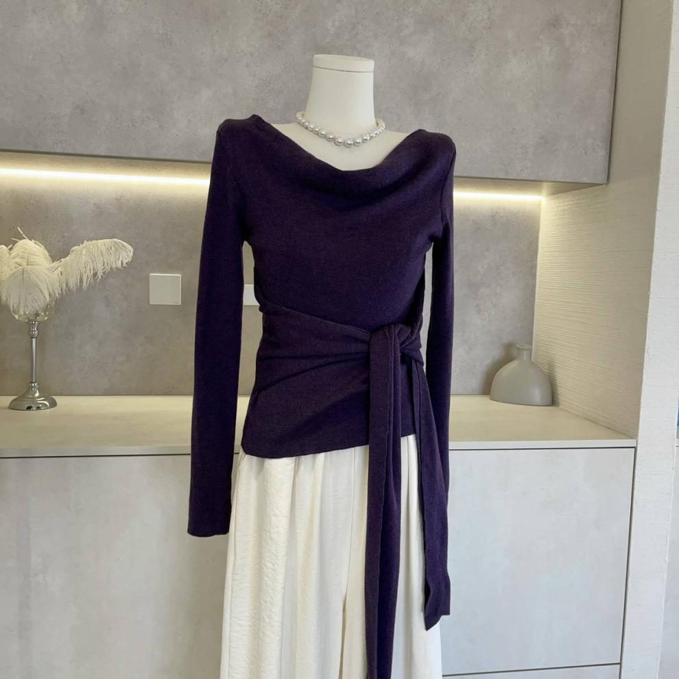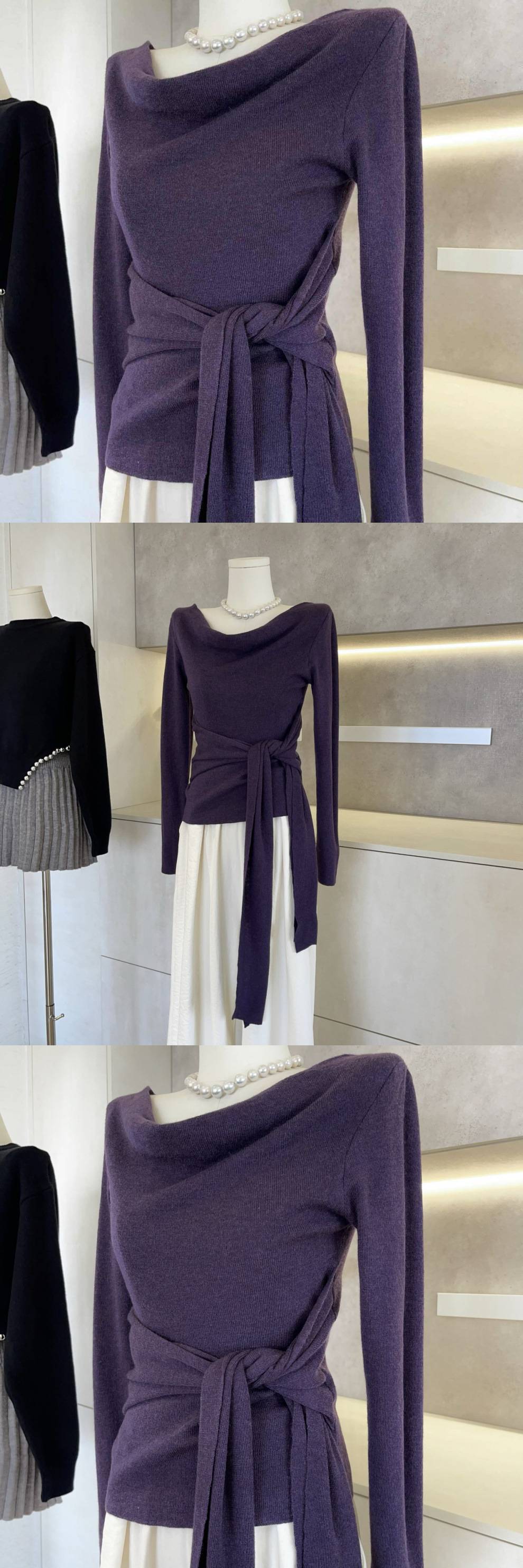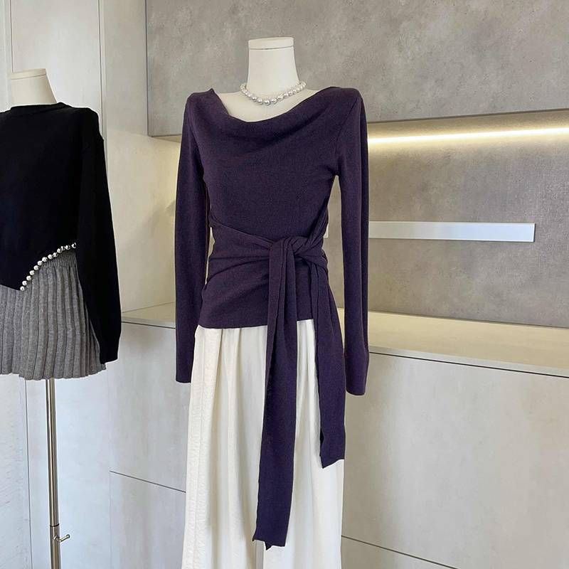 봄 이른 봄 2025 한국 디자인 최고 여성 슬림 핏 슬리밍 리본 매듭베이스 스웨터 트렌디