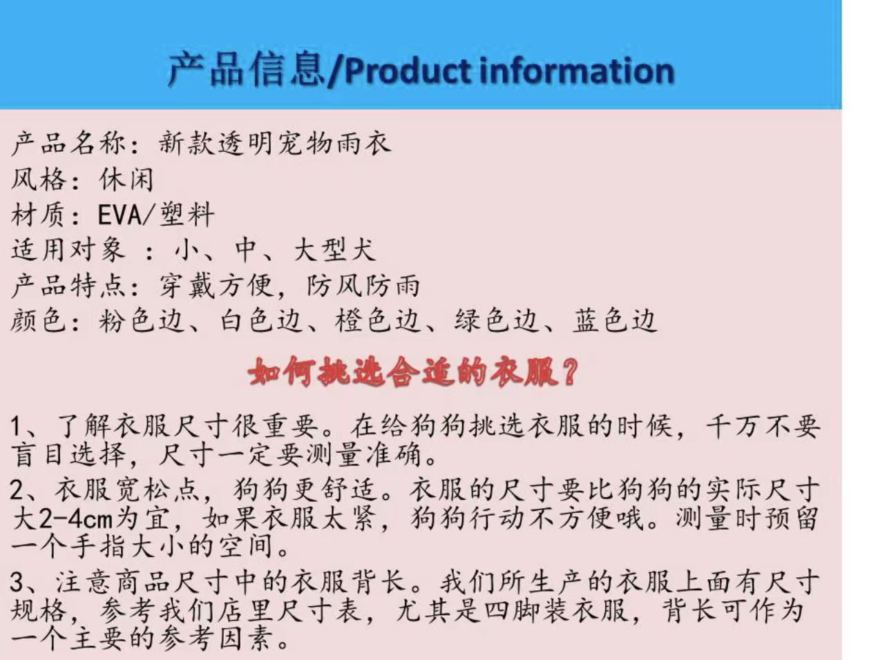 투명한 개 비옷 애완 동물 옷 도매 대형 중형 개 Samoyed 테디 비터 팬더 고양이 방수 판초스토어 가기