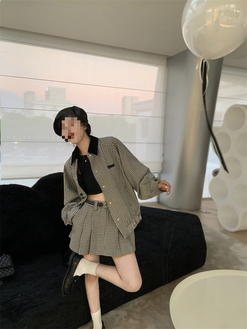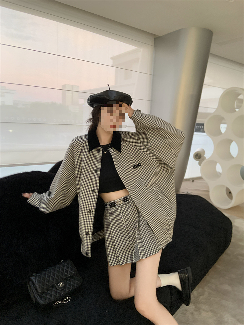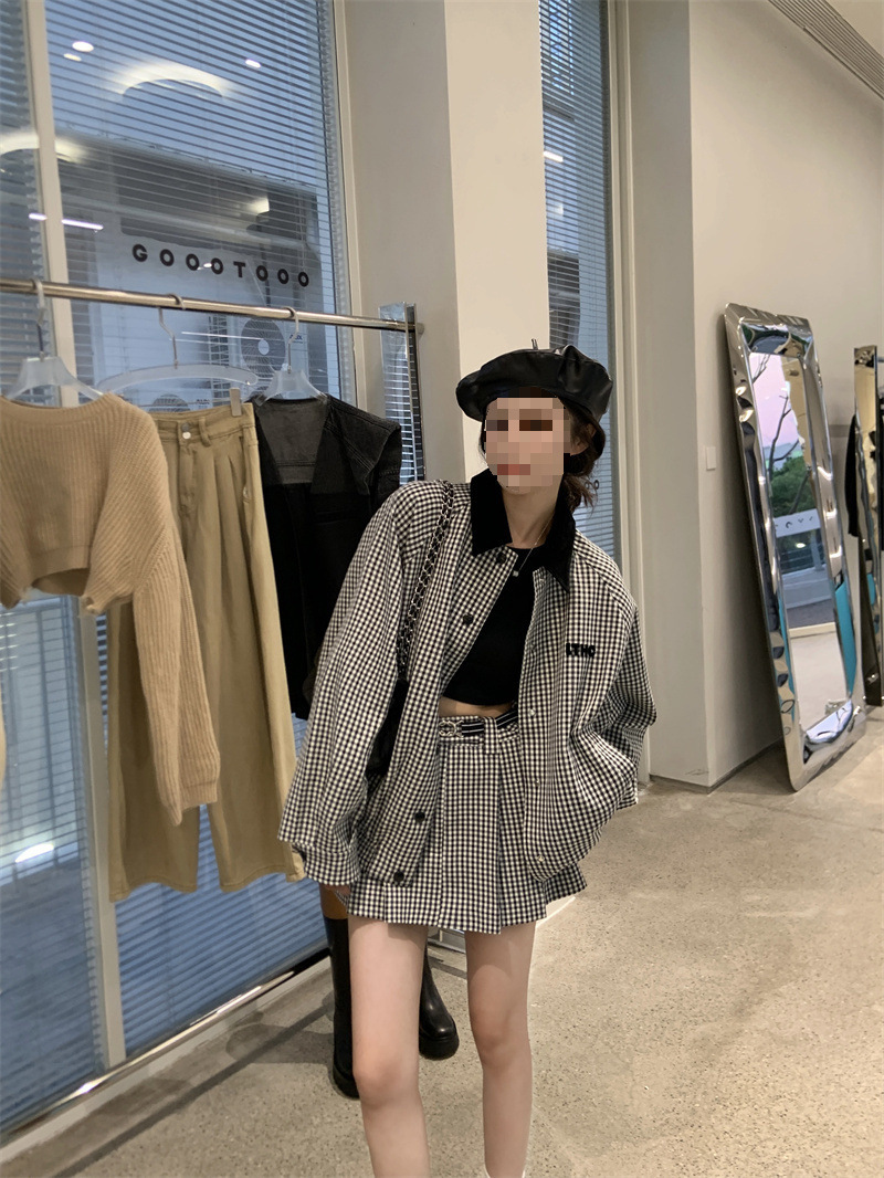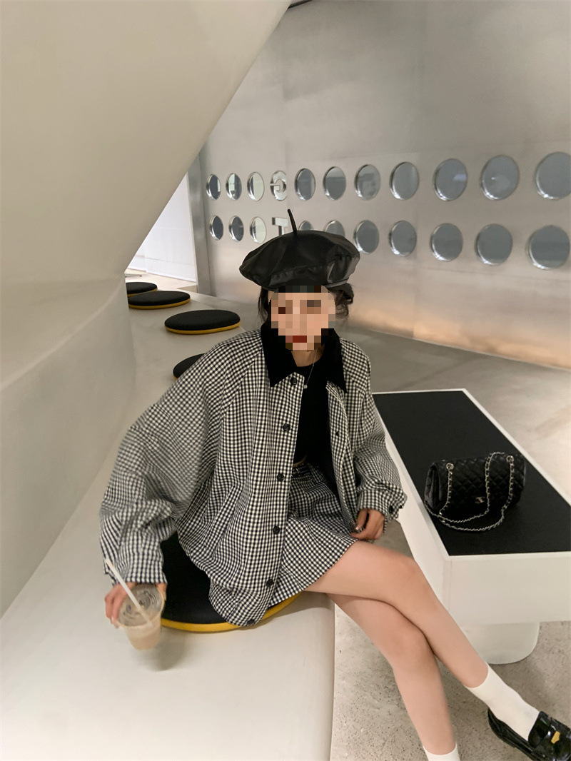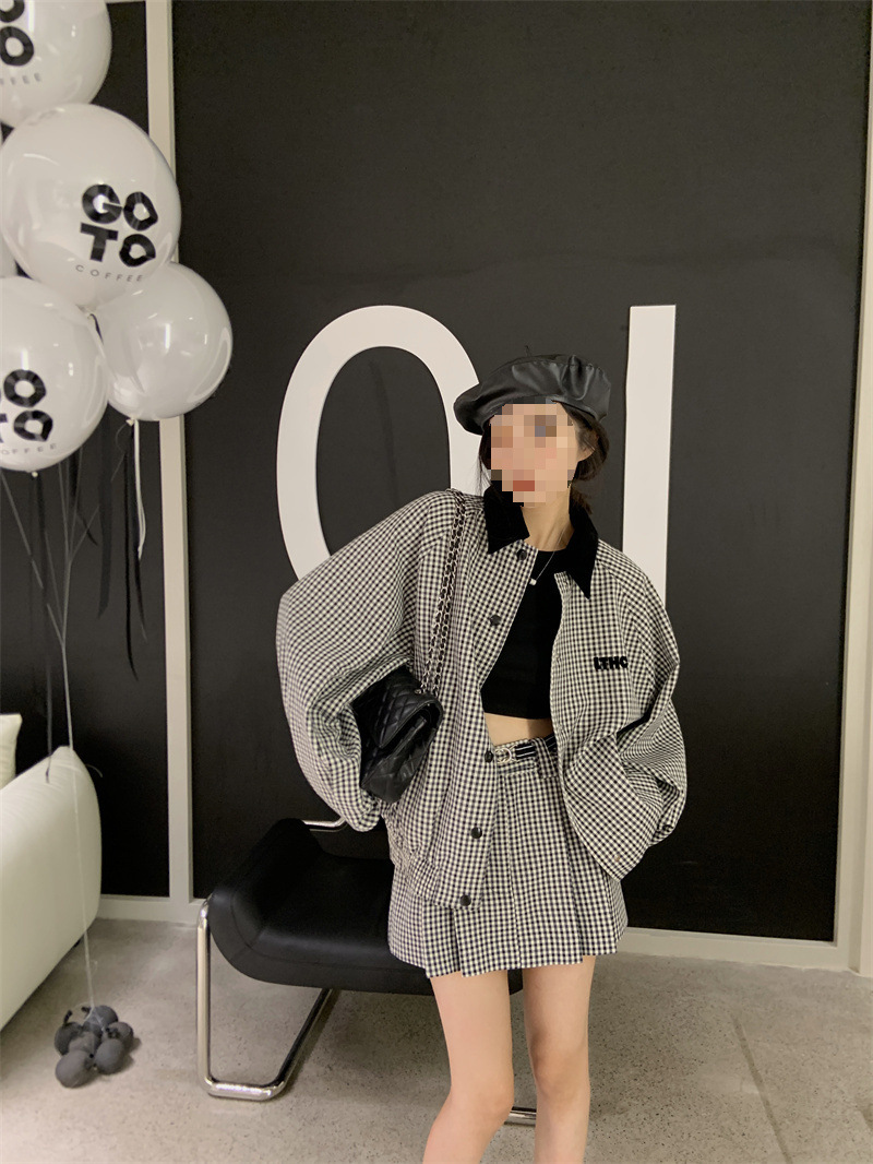 프랑스 우아한 세트 격자 무늬 콘트라스트 코트 여자 2025 가을 한국 A 라인 스커트 투피스 세트 트렌디스토어 가기