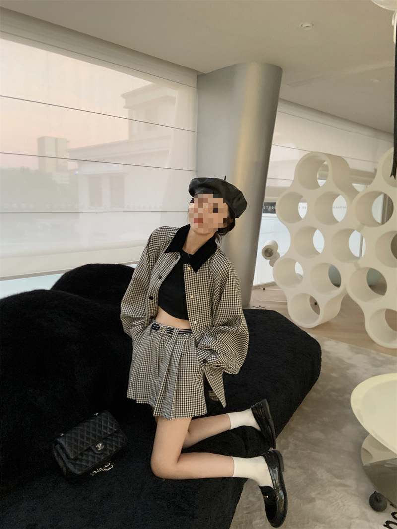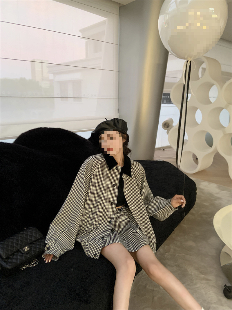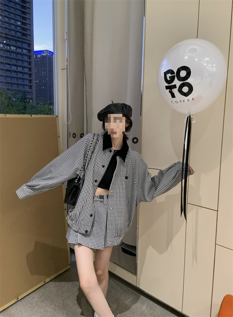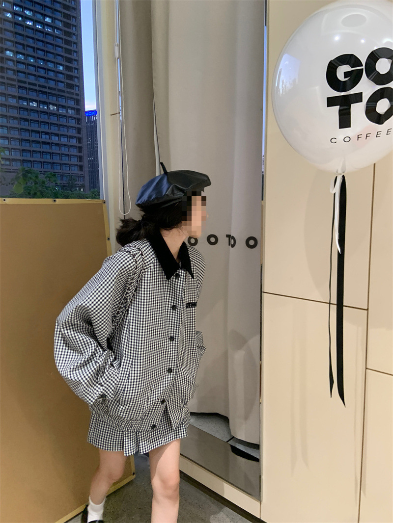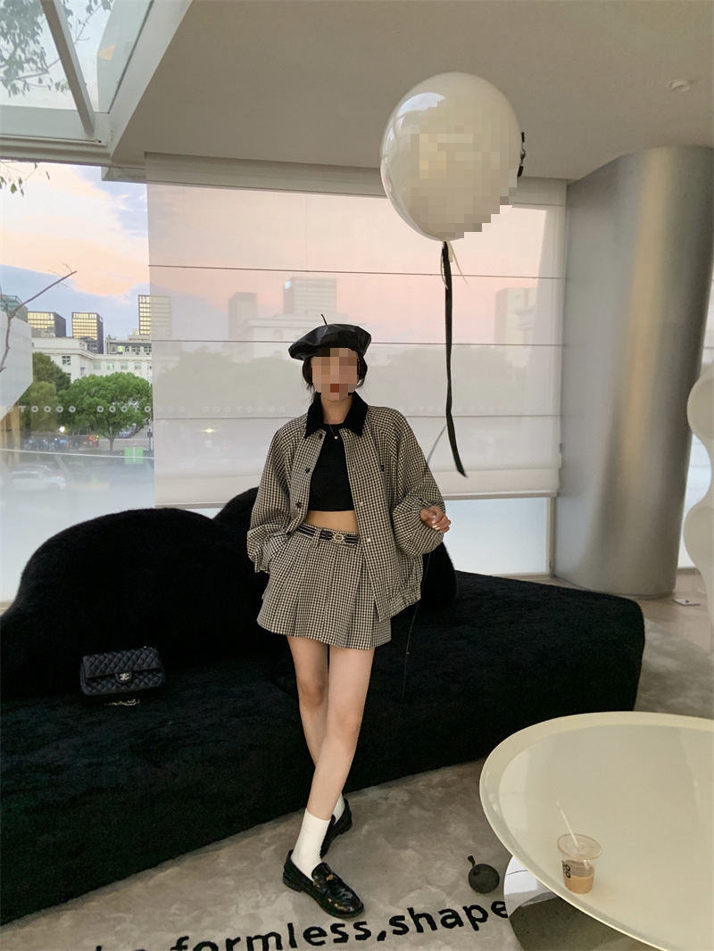 프랑스 우아한 세트 격자 무늬 콘트라스트 코트 여자 2025 가을 한국 A 라인 스커트 투피스 세트 트렌디스토어 가기