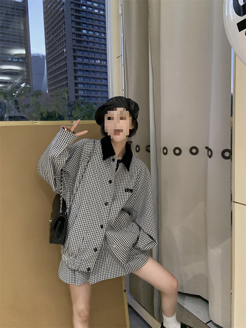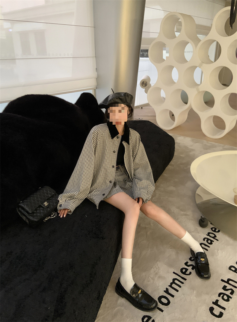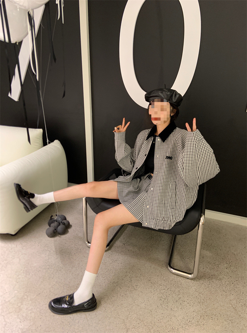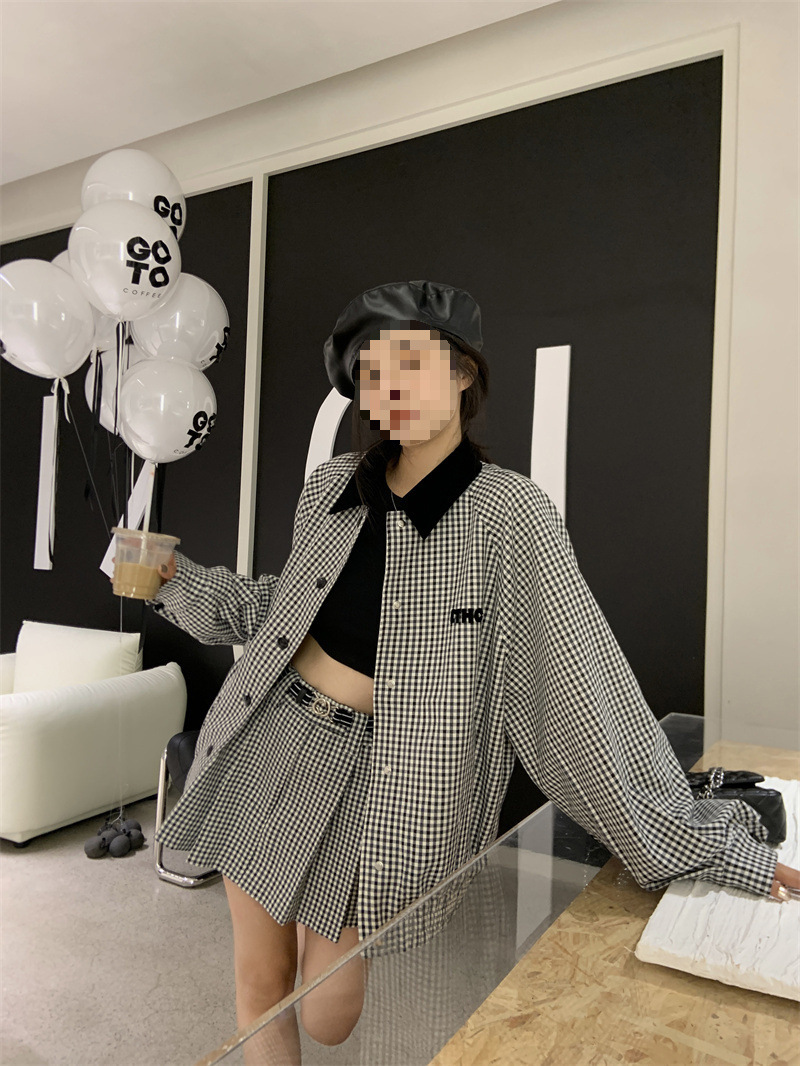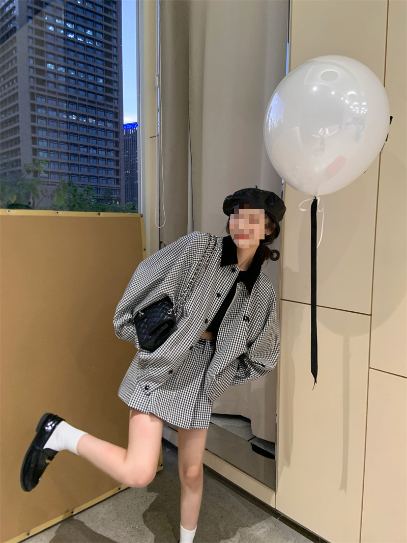 프랑스 우아한 세트 격자 무늬 콘트라스트 코트 여자 2025 가을 한국 A 라인 스커트 투피스 세트 트렌디스토어 가기