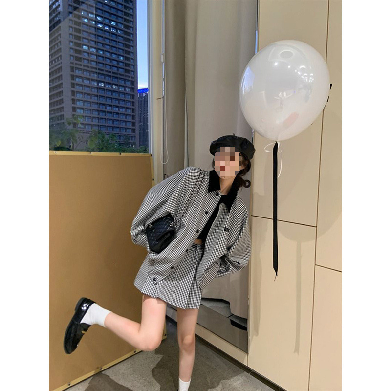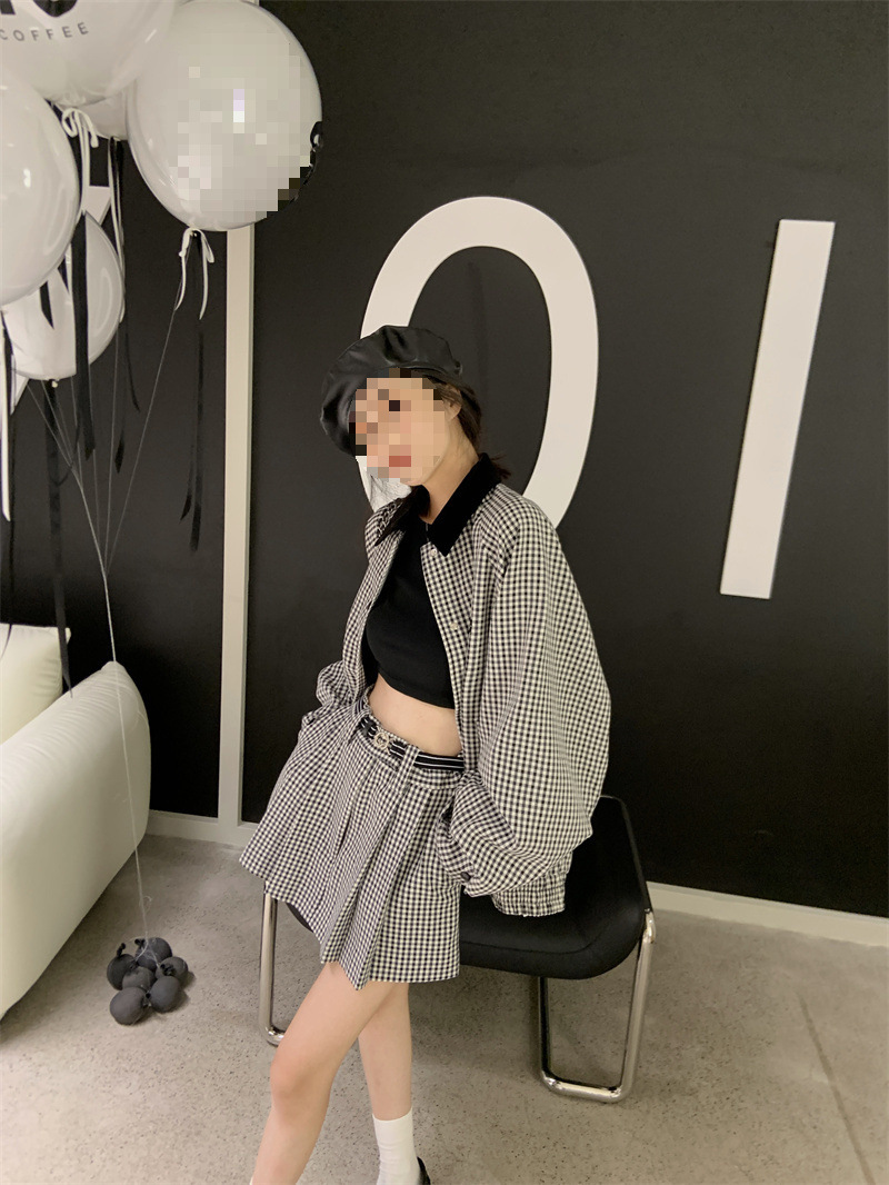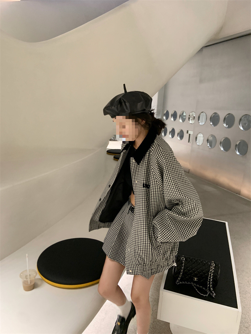 프랑스 우아한 세트 격자 무늬 콘트라스트 코트 여자 2025 가을 한국 A 라인 스커트 투피스 세트 트렌디