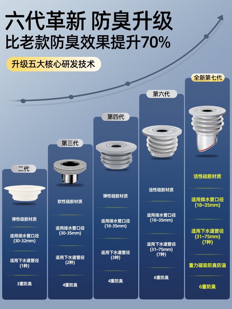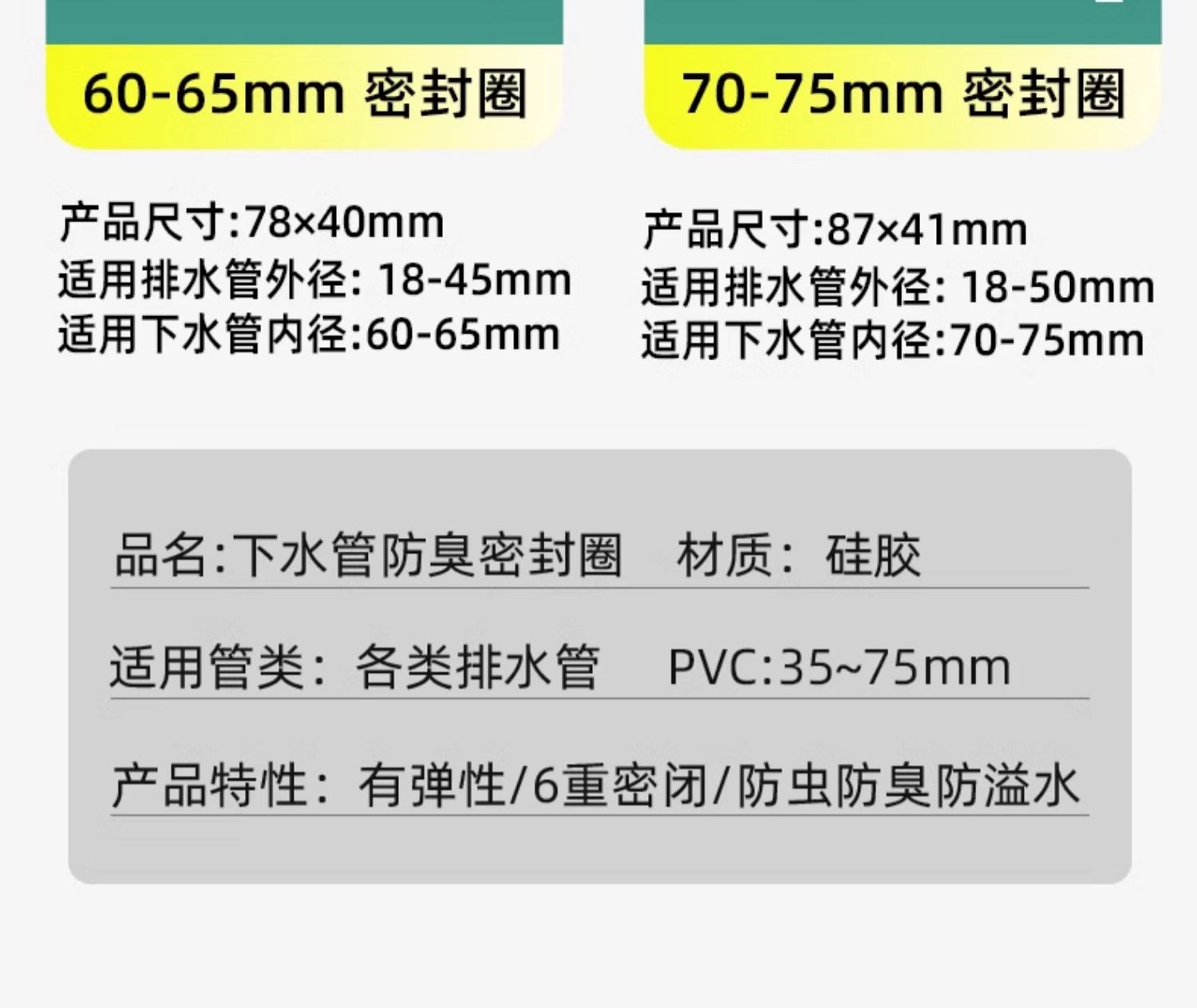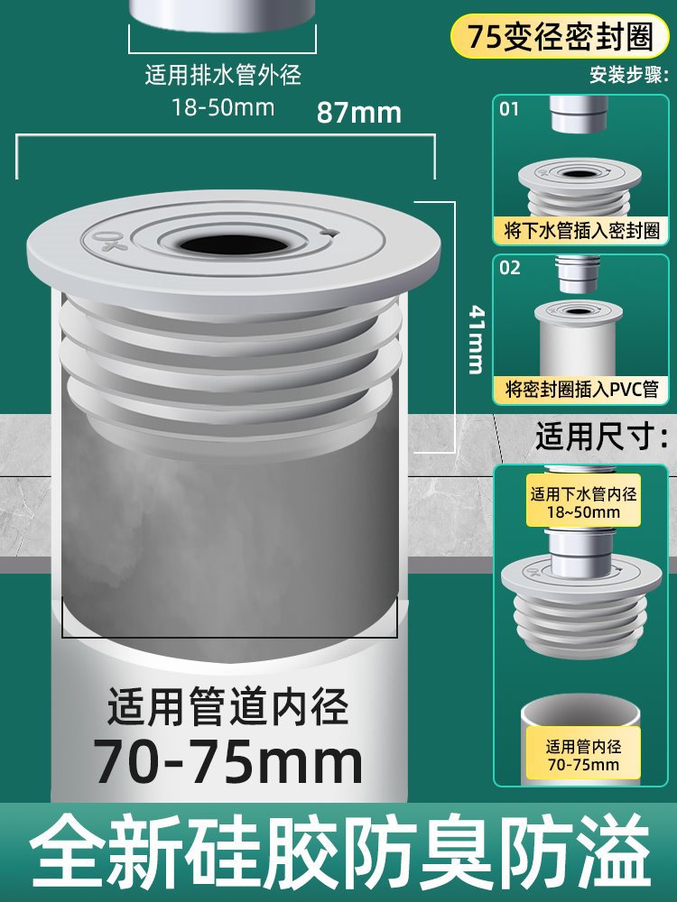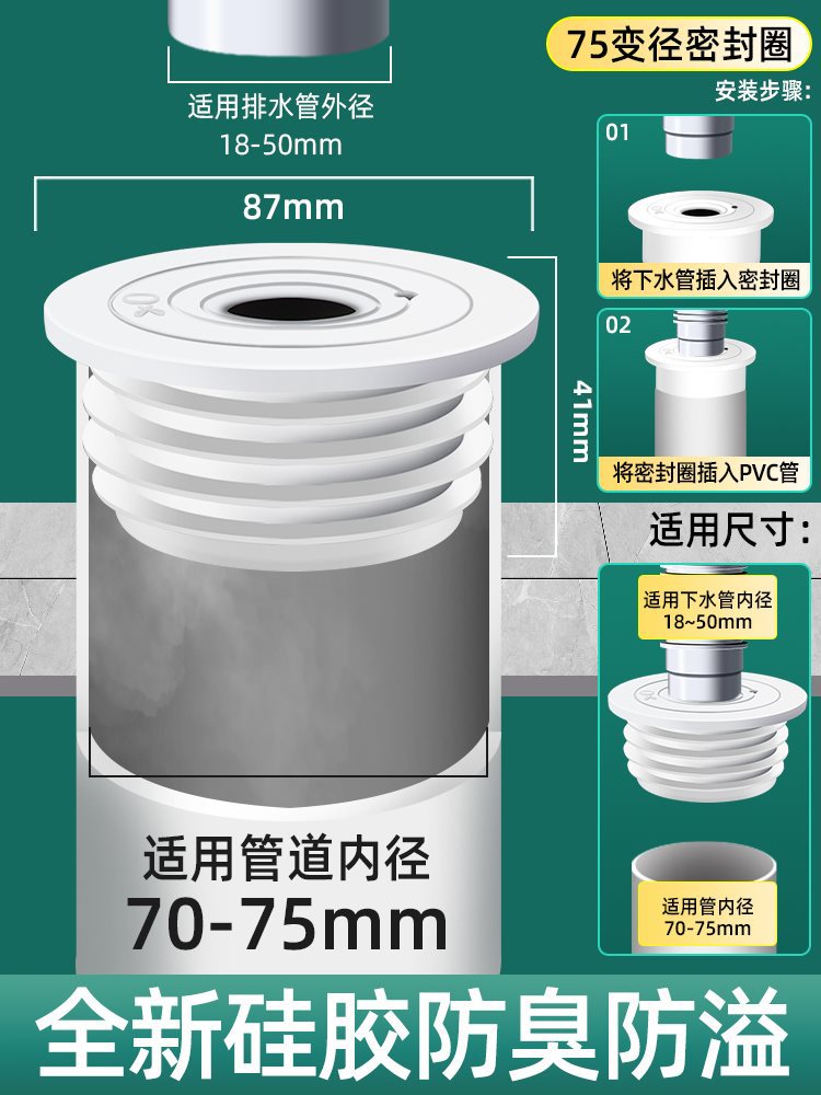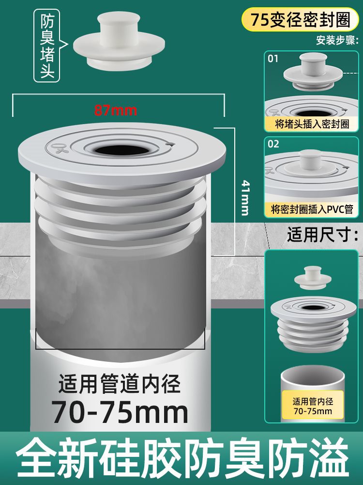 주방 하수관 밀봉 플러그 세탁기 배수 파이프 5075 밀봉 커버 실리콘 링 냄새 방지 차단스토어 가기