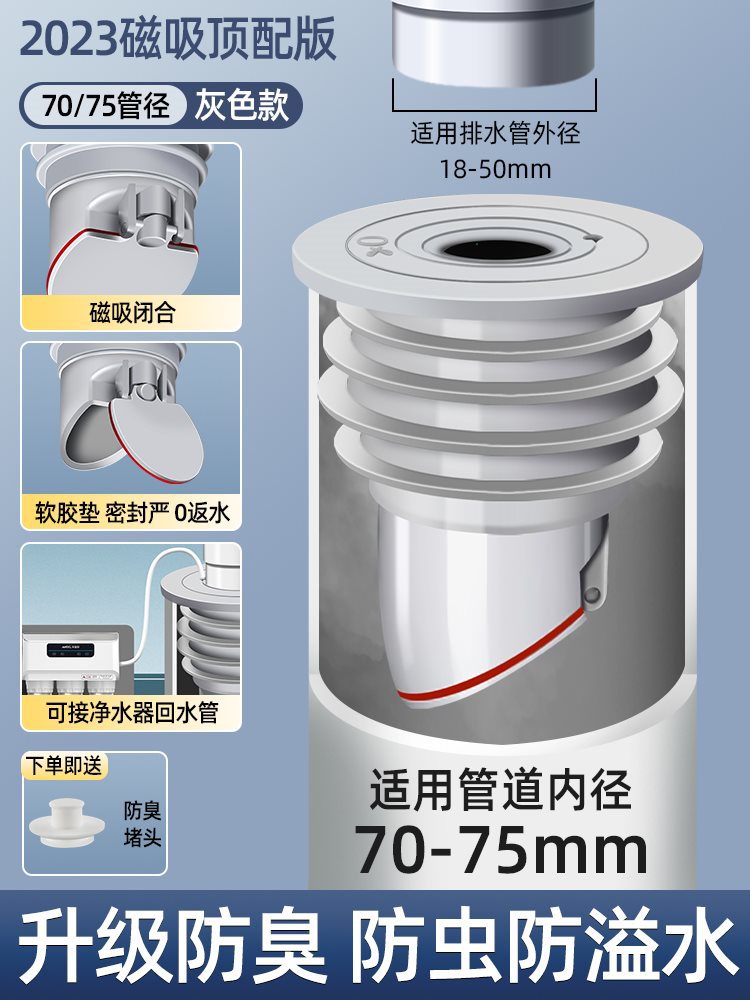 • 업그레이드 모델 [70/75 파이프에 적용 가능] 자기 냄새 방지 장치·회색