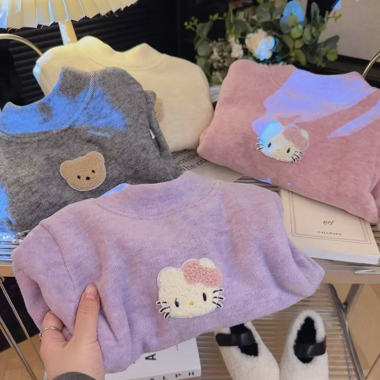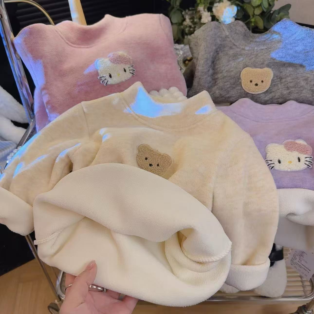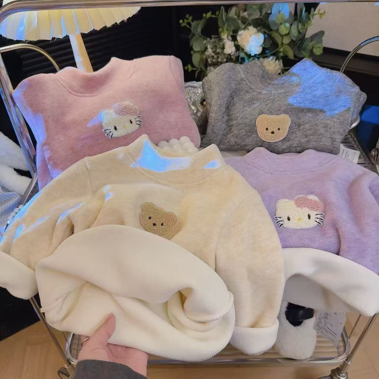아동베이스 셔츠 양모 실크 두껍게베이스 셔츠 아기 소년과 소녀 부드러운 왁스 하이 칼라 탑 어린이 둥근 목 따뜻한스토어 가기