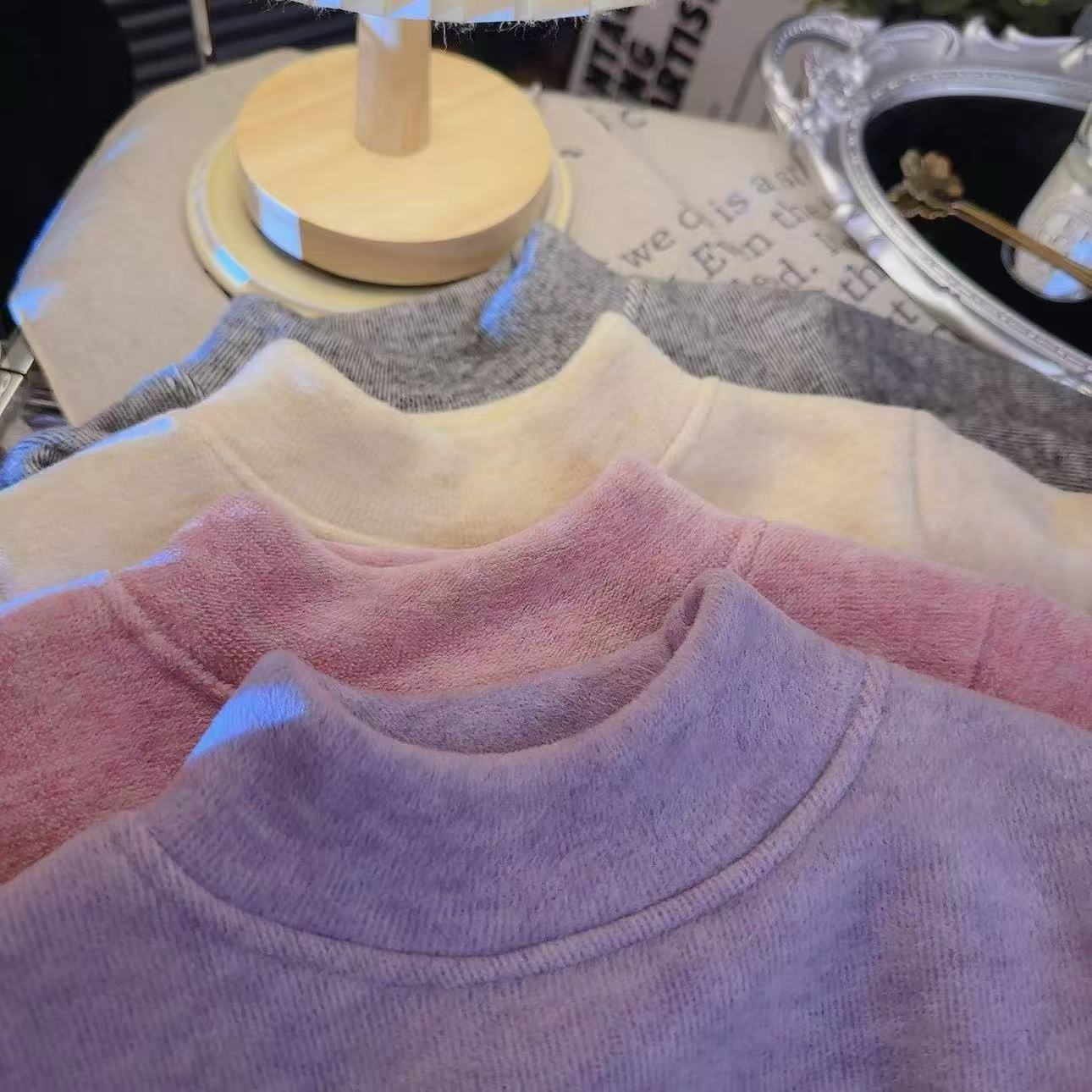 아동베이스 셔츠 양모 실크 두껍게베이스 셔츠 아기 소년과 소녀 부드러운 왁스 하이 칼라 탑 어린이 둥근 목 따뜻한
